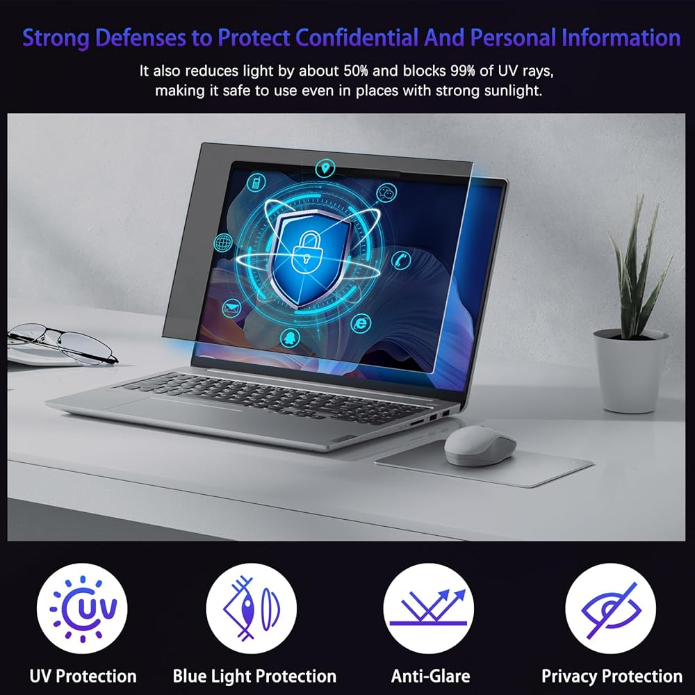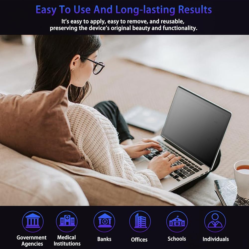 • ​【Protection and Durability】This privacy screen protector is crafted from durable PET material, offering excellent scratch and impact resistance. Its 4H hardness ensures it can withstand daily scratches and abrasion, maintaining screen clarity and aesthetic appeal for years. It safeguards privacy while providing a comfortable working environment. Ideal for privacy-conscious professionals, students, and frequent travelers, this protector balances functionality with discreet protection
