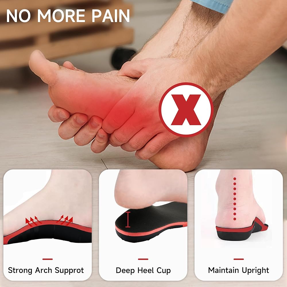 نعال داخلية لدعم قوس التهاب اللفافة الأخمصية للقدم المسطحة، والقوس العالي، وألم القدم، ونعال داخلية لتقويم آلام القوس للنساء والرجال (M، زوجان)