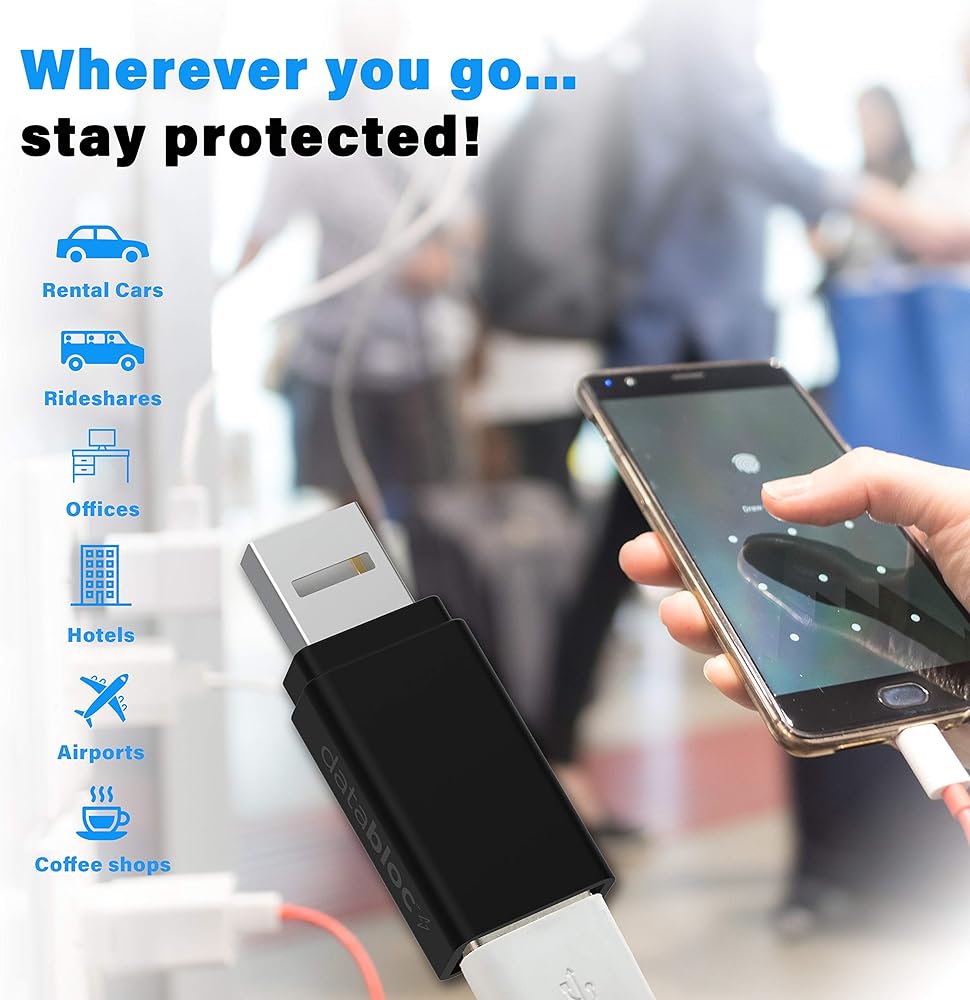 EyeBloc Security: يوفر مانع بيانات USB Databloc USB حلاً آمنًا للشحن ، مما يضمن أن تظل أجهزتك محمية في المساحات العامة. متوافق مع الهواتف الذكية والأجهزة اللوحية ، فإنه يحظر نقل البيانات مع السماح بشحن الطاقة الفعال