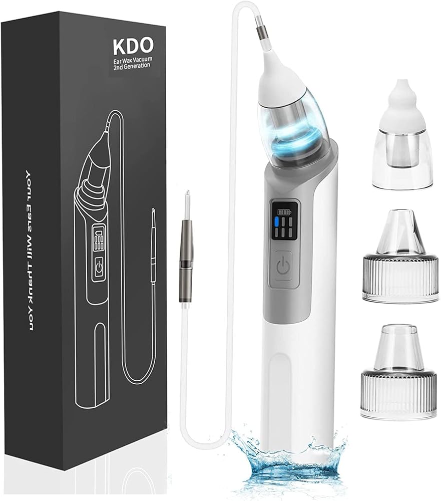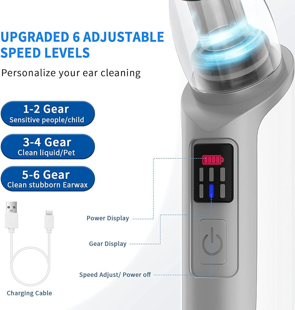 مكنسة شمع الأذن، شفط قوي 6 تروس KDO، مزيل شمع الأذن، مؤشر إزالة شمع الأذن، آمن، طرف من السيليكون الناعم، أداة تنظيف الأذن، مجموعة إزالة المياه للبالغين من البشر والحيوانات الأليفة