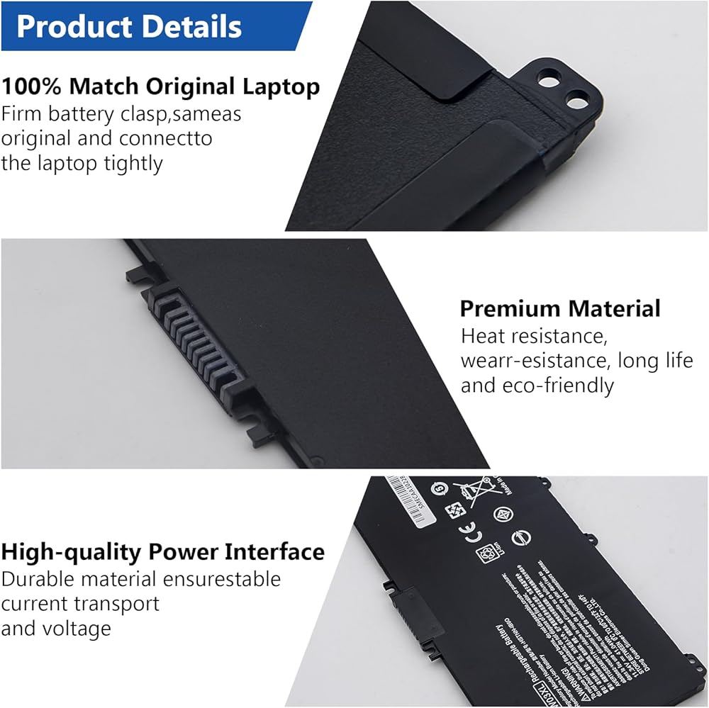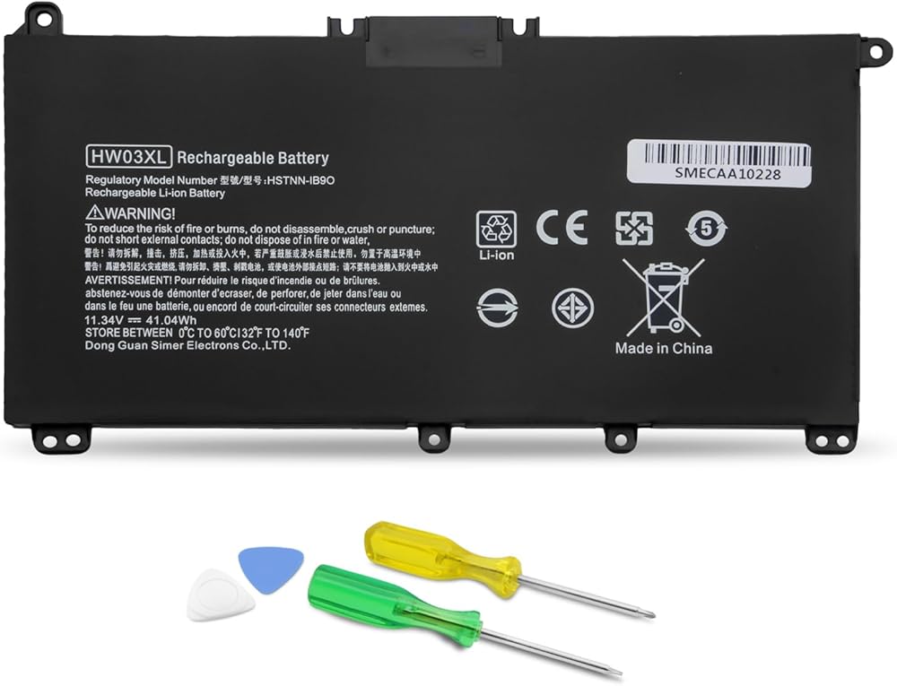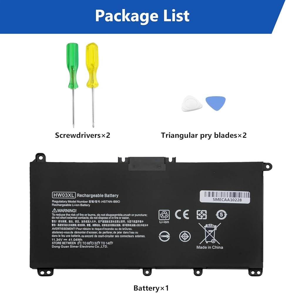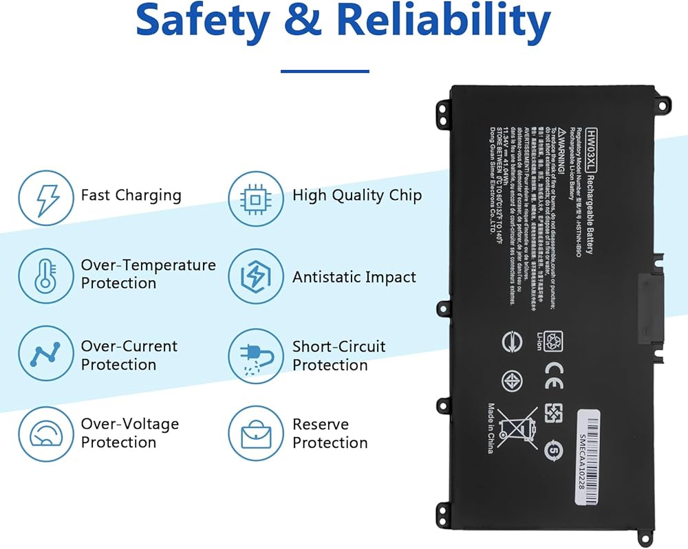 Specifications of HT03XL Laptop Battery HP Laptop Battery type: Li-ion. Color: Black. Voltage: 11.55 Volt. Capacity: 41.9 Wh. Cell: 3 cells. Packages includes: HT03XL laptop battery×1, screwdrivers×2, triangular pry blades×2. HT03XL Laptop Battery for HP Pavilion 14-CE 14-CF 14-DF 15-CS 15-DA 15-DB;HP Pavilion x360 Convertible 14m-dh0001dx 14m-dh1003dx 14-DH2011NR; Compatible HP Laptop Models Laptop Battery Replacement for HP Pavilion 240 G7, 245 G7, 250 G7, 255 G7, 340 G5, 348 G5 Series;HP Pavilion 14-CE 14-CF 14-CK 14-CM 14-DF 14-MA 14Q-CS 14Q-CY 14S-CF 14S-CR 14-FQ Series:HP Pavilion 14-DF0XX 14-CE0005 14-CE0025TU 14-CE0034TX14-DQ2035CL 14-CM0020NR 14-CM0012NR 14Q-CS0006TU 14-FQ0032MS 14-FQ0037NR 14-CK0013LA 14-CK2098LA;HP Pavilion x360 Convertible 14m-dh0001dx 14m-dh1003dx 14-DH2011NR;HP Pavilion 15-CS 15-CU 15-CW 15-DA 15-DB 15-DY 15G-DR 15T-DA 15T-DB 15-EF 17-BY 17-CA Series; Safety& Reliability We deeply know battery safe is most important for user, so we have invested a lot of energy in the deep safety test in the research and development process, and equipped the battery with a series of safety function system