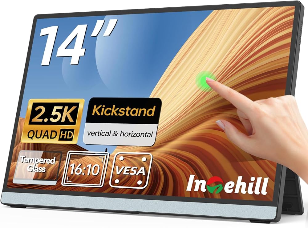 intehill 14 "شاشة محمولة 2.5 كيلو ، شاشة محمولة 2560 × 1600 لجهاز الكمبيوتر المحمول ، 16:10 شاشة السفر مع زجاج مقسى ، 100 ٪ SRGB HDMI شاشة محمولة ، شاشة خارجي للهاتف المحمول مع حامل ومكبر صوت ، Q14ZA in Kuwait