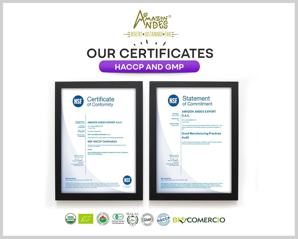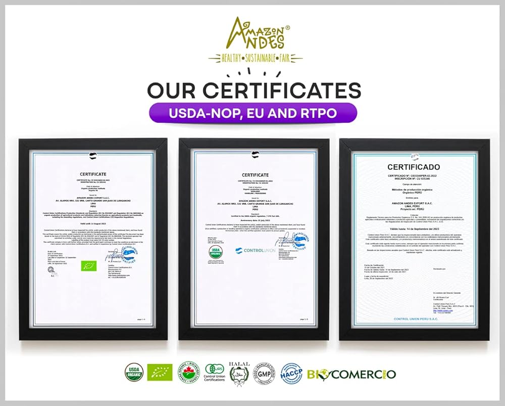 • ✔ منتج بيروفي.- يتم إرساله من المنشأ، أمازون أنديس هي شركة بيروفية تعمل مباشرة مع المزارعين. صنع في بيرو. تم تصنيعه في منشأة مسجلة لدى إدارة الغذاء والدواء الأمريكية (FDA) وفقًا لممارسات التصنيع الجيدة (GMP) ونظام تحليل المخاطر ونقاط التحكم الحرجة (HACCP).