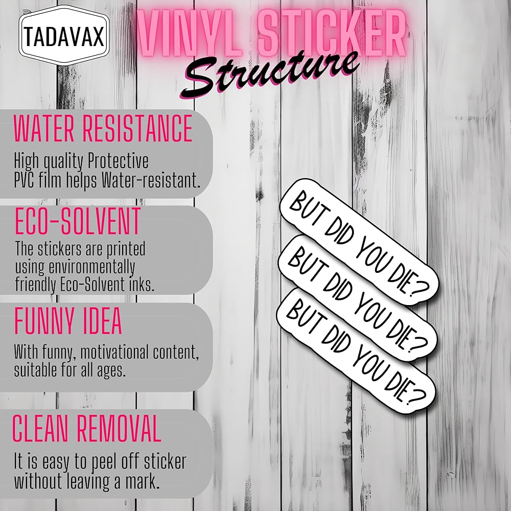 جودة عالية: تم تصميم ملصقات Tadavax Vinyl من مواد من الدرجة الأولى ، مما يوفر التصاق استثنائي ، ومتانة مقاومة للماء ، والمرونة. يضمن الدعم اللاصق القوي وضعًا آمنًا ، حتى على الأسطح المنحنية أو غير المستوية. هذه الملصقات هي جهد للتقدم والإزالة ، مع عدم وجود بقايا أو تلف على السطح المطبق.