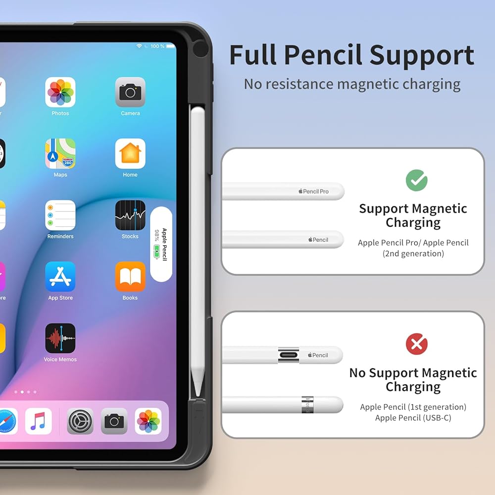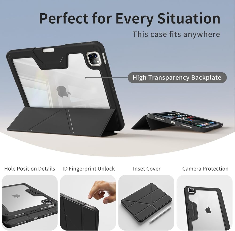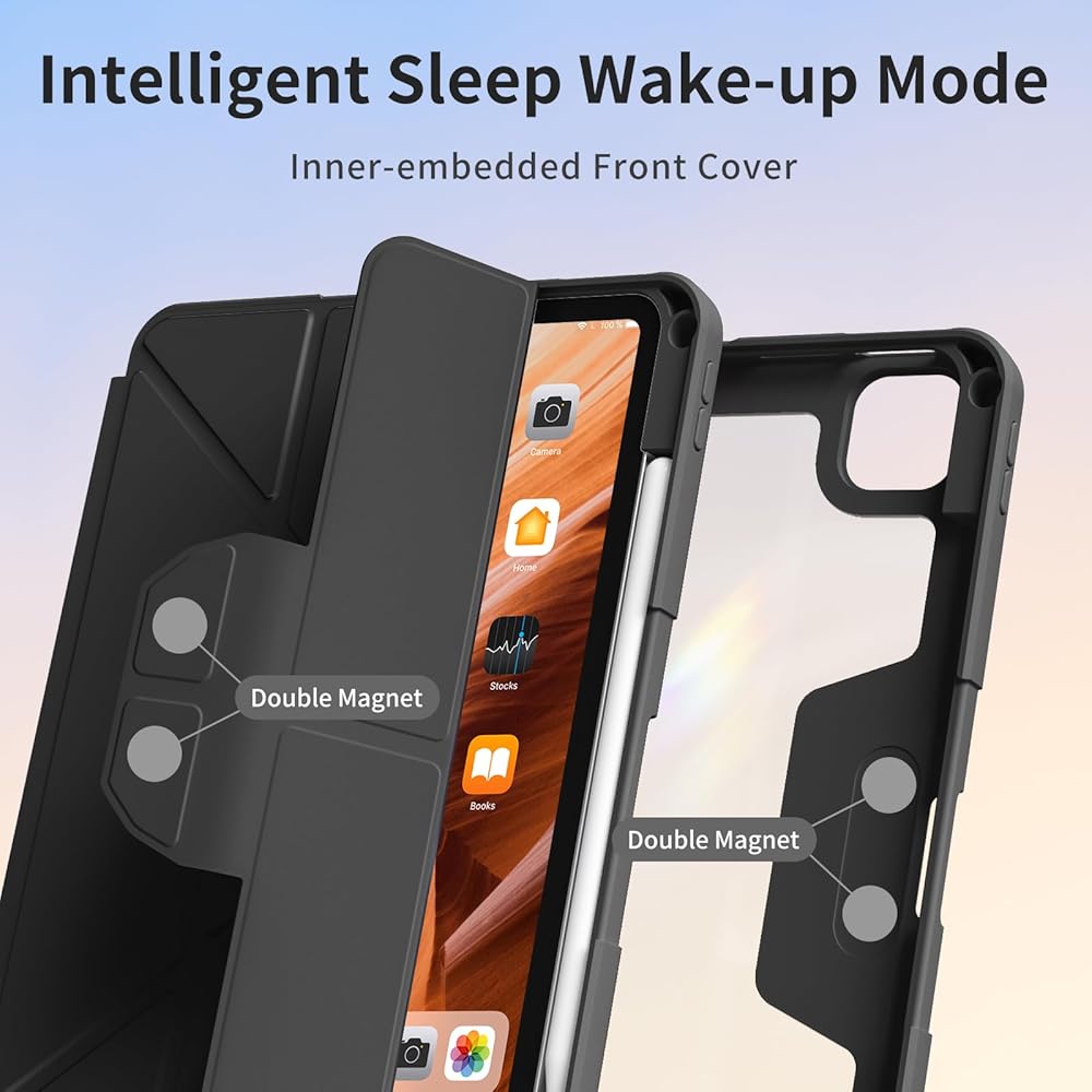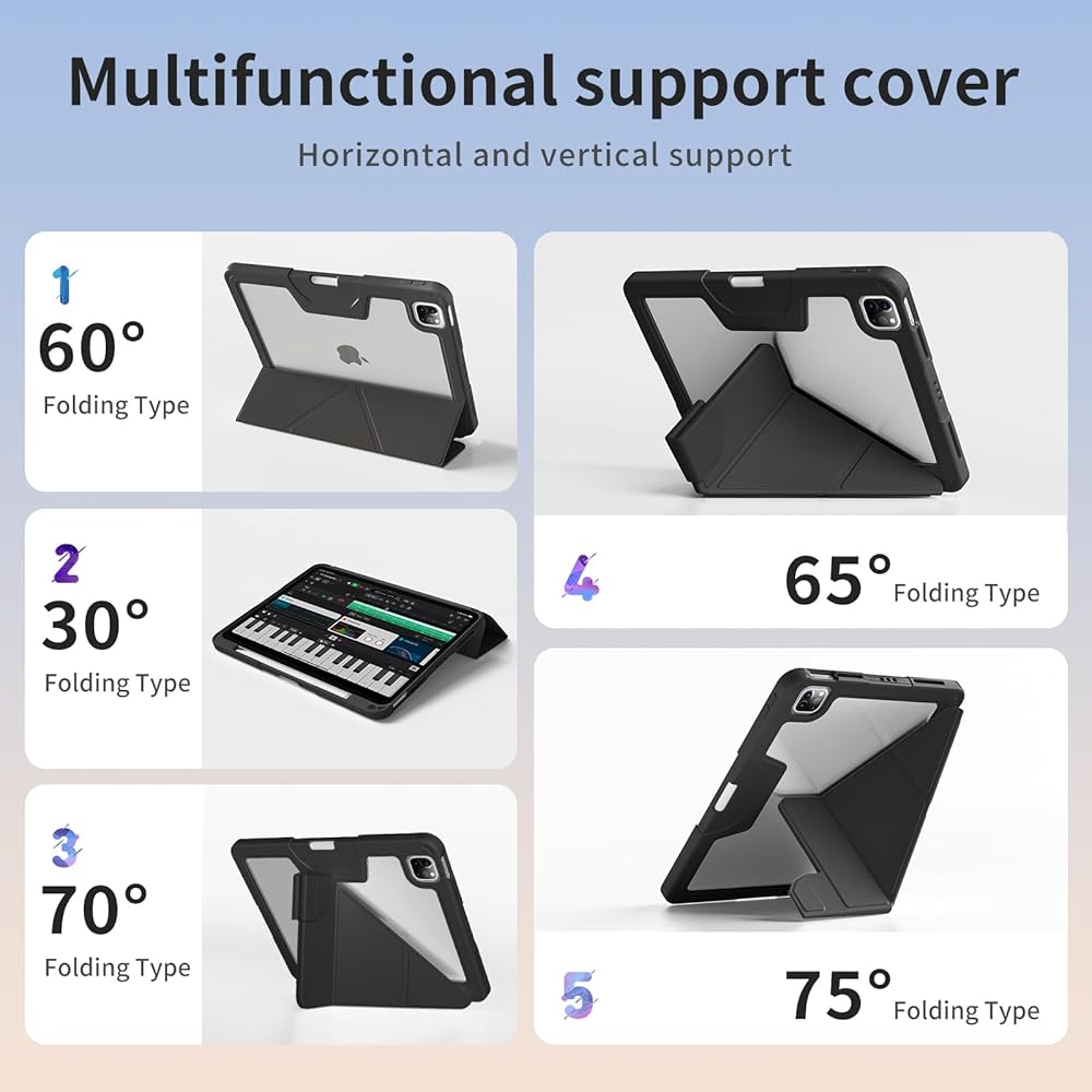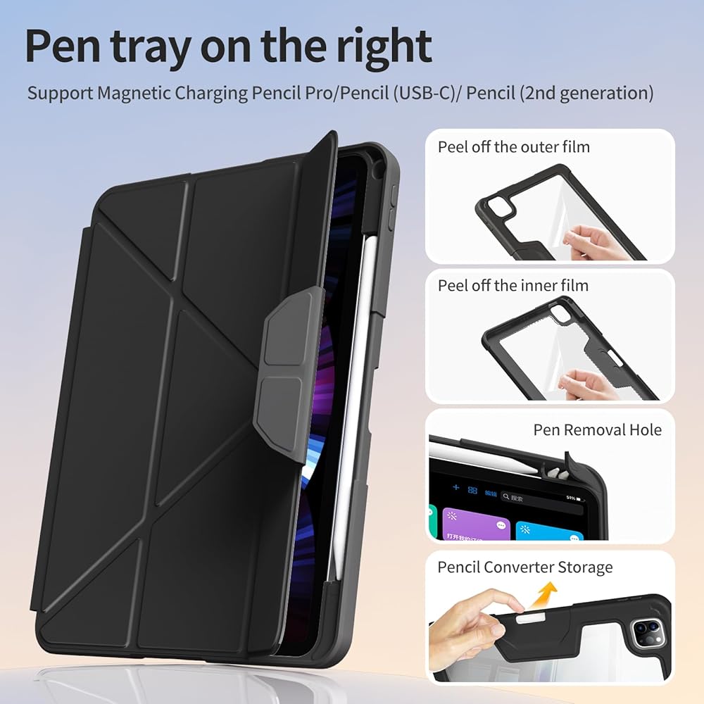 【حالة طي جديدة على شكل Y】 هذا iPad 11 بوصة M3 2025/M2 2024 ، يوفر iPad Air 5th/4th Generation/iPad Pro 11 بوصة 4 بوصة/3rd/2nd/1 الجيل الأول الفرق عن طريق تصميم الحماية الكاملة ، والغطاء الجلدي الأمامي ، وإطار TPU الناعم ، ويتم إضافة أجزاء متعددة إلى الإطار من الصدمات ، وتسقطها ، وتؤثر. يوفر PC Clear Clear Hard Crystal دعمًا قويًا وتأتي اللوحة الخلفية مع أربعة ثقوب صغيرة للمساعدة في تبديد الحرارة وتمديد عمر الجهاز اللوحي.