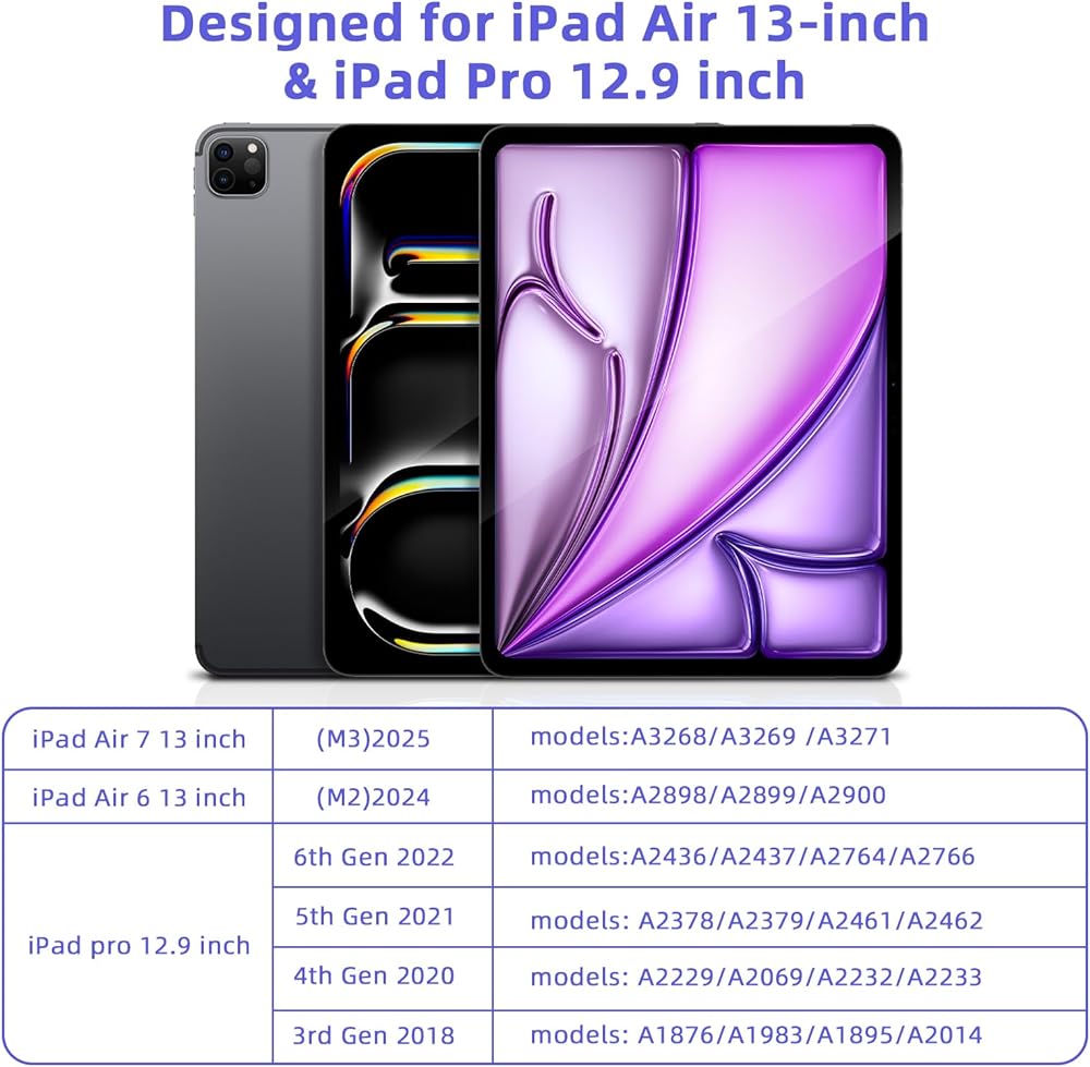 • 【مصمم لـ iPad Air 13 بوصة و iPad Pro 12.9 بوصة】 -GOOJODOQ Model A5707 تم تصميم حالة لوحة المفاتيح A5707 حصريًا لجهاز iPad AIR 13 "M3 2025 (A3268/A3269/A3271) ، iPad Air 6 13 Int M2 2024 (نماذج: A2898/A2899/A22900) (النماذج: A2436/A2437/A2764/A2766) ، iPad Pro 5th Gen 2021 تم إصدارها (النماذج: A2378/A2379/A2461/A2462) ، IPAD Pro 4th Gen 2020 (Models: A2229/A2069/A2232/A2233) A1876/A1983/A1895/A2014). ▲ ملاحظة: غير متوافق مع أي أجهزة أخرى.