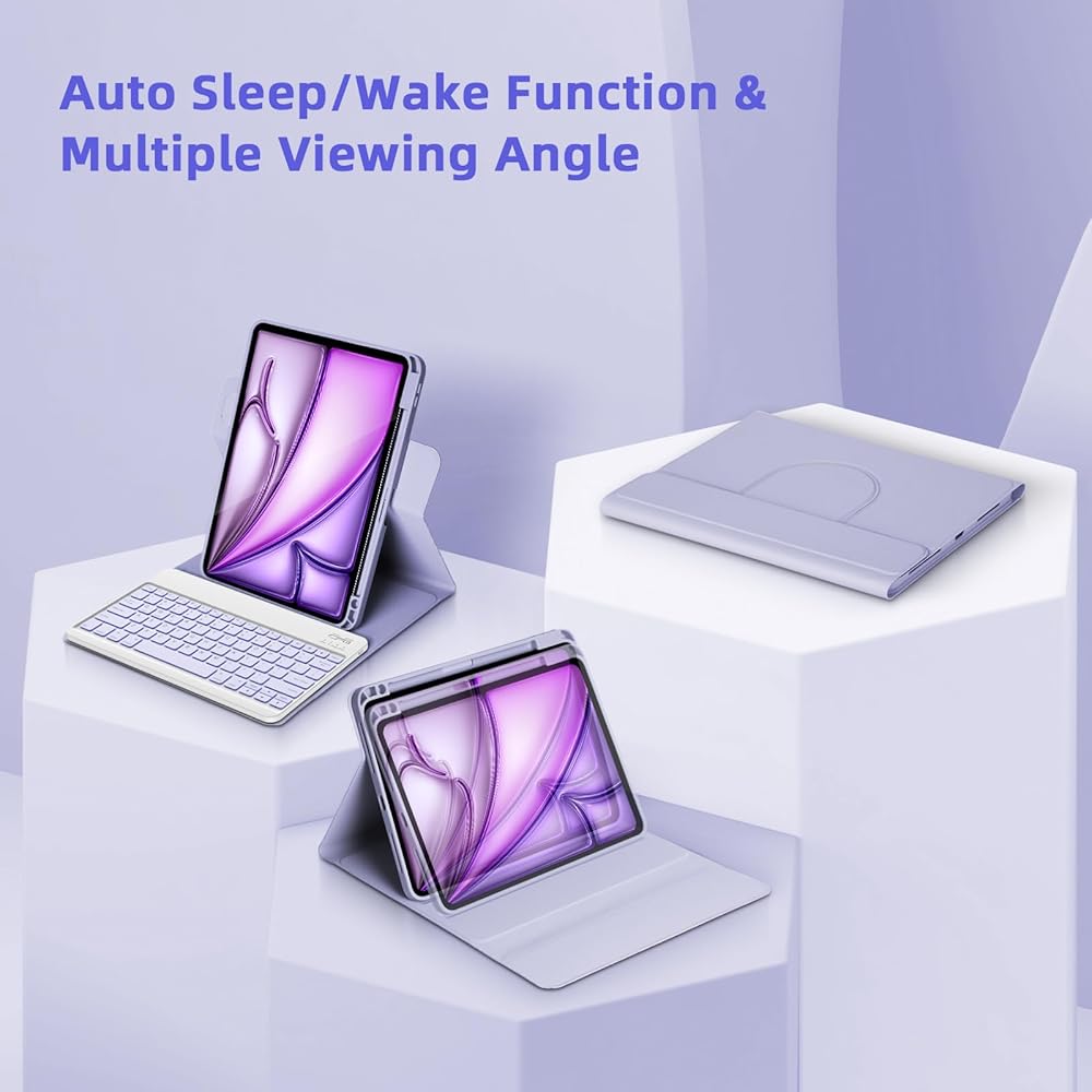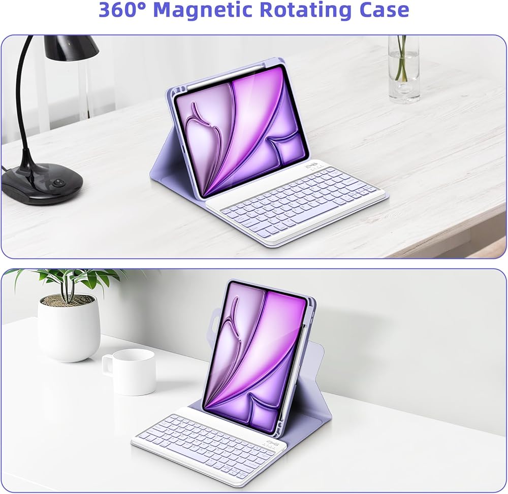 حالة لوحة المفاتيح لـ iPad Air 13 Inch 2025 M3/2024 M2 ، iPad Pro 12.9 بوصة 6th/5th/4/3rd Gen ، 360 حالة دوارة ولوحة مفاتيح قابلة للفصل مغناطي