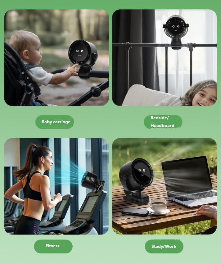 Functions -720° ultra-wide-angle air delivery, hanging fan mode, clip mode, flat placement mode, stable clamping, five wind speeds, clip small fan, wireless long battery life.