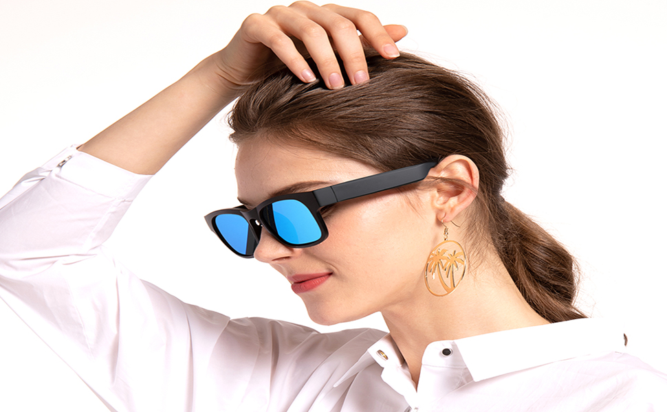 التحكم الصوتي في النظارات الذكية : يمكن أن تستمع نظارات Bluetooth اللاسلكية للموسيقى اللاسلكية إلى الموسيقى والمكالمات ، وتنقل عبر الاتصال داخل الأذن ، مع تقنية فك التشفير بلوتوث 5.0 ، يمكن أن تحقق التحكم الصوتي المتكامل من الذكاء الاصطناعي اتصال Wi-Fi على ارتفاع 30 قدمًا