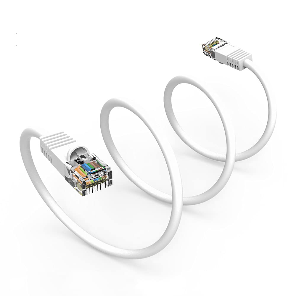 15Ft Cat5E UTP Ethernet Network Booted Cable White | Category 5E patch cables are designed for home and office network connection. They are ideal for connecting computers to routers, patch panels, cable modems and switches. Each comes UL verified and meets TIA/EIA-568-C.2 Cat.5E standards. Our Category 5E cables are made of four twisted 24AWG pure copper wire pairs cable with a PVC jacket and snagless molded boot, and terminated with RJ45 plug with 50 micron gold plated contacts. The snagless bubble design protects the locking tabs on the RJ45 connectors from being damaged or accidental snapped off. Our Category 5E cables are offered in a variety of lengths and colors for your needs.