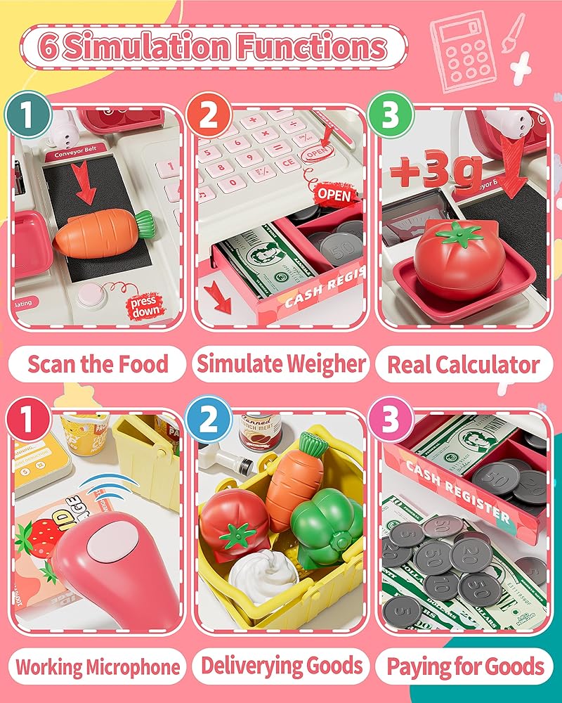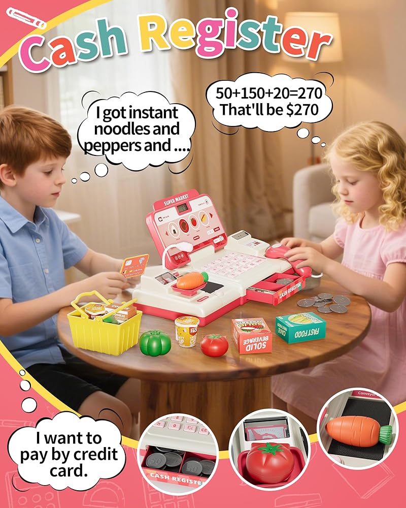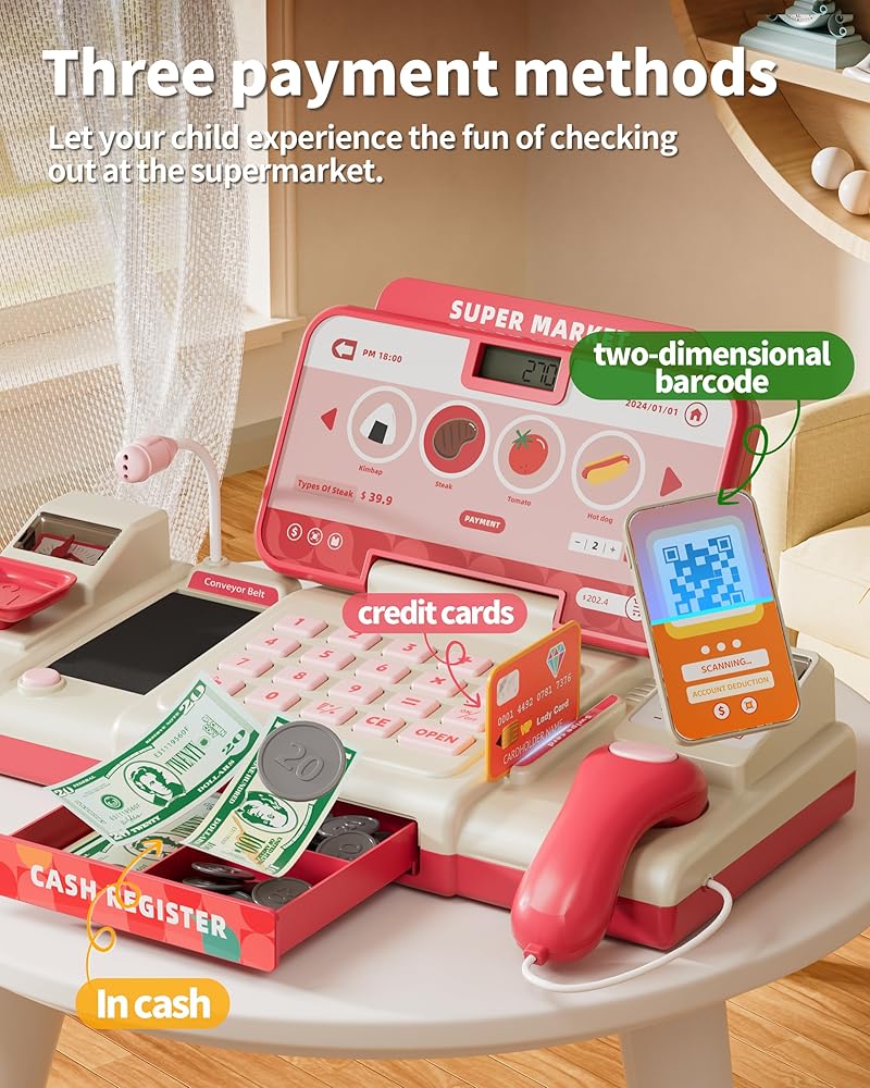 【Safe, Durable, and Educational】Child safety is our priority: rounded edges, child-safe and non-toxic materials, and sturdy construction ensure long-lasting use. More than just fun, this toy helps develop counting, money skills, social interaction, and responsibility—ideal for ages 3 and up!