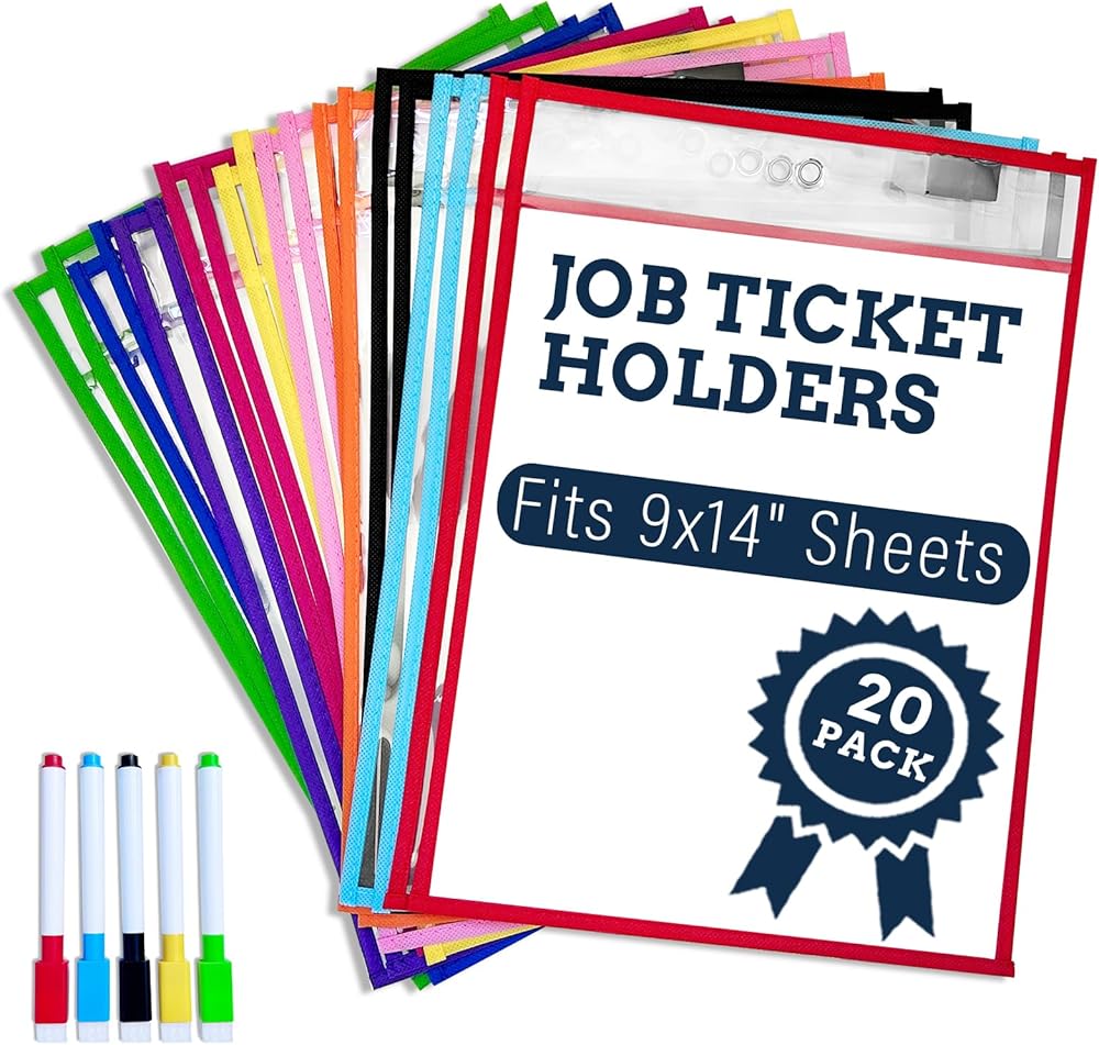 1. 10 Vibrant Colors + 1 Bonus Dry Erase Marker: This set has 10 dry erase pocket sleeves in 10 eye-catching hues—great for color-coding classroom lessons, office workflows, or warehouse job tickets. It also includes 1 free dry erase marker, so no extra purchases are needed! Bold, long-lasting colors add personality to your space and make document sorting easy at a glance.