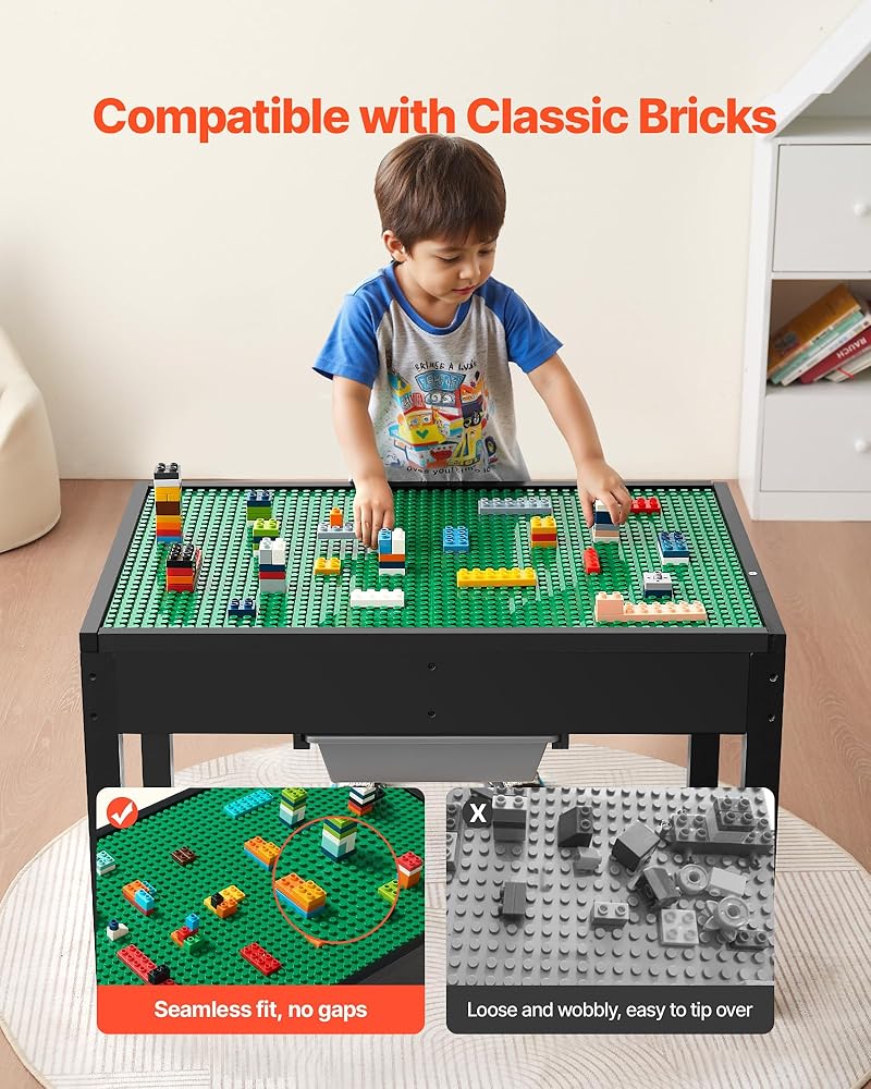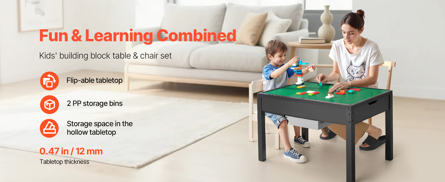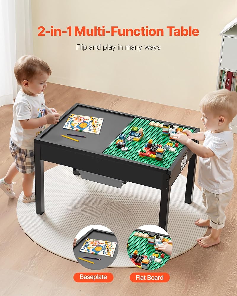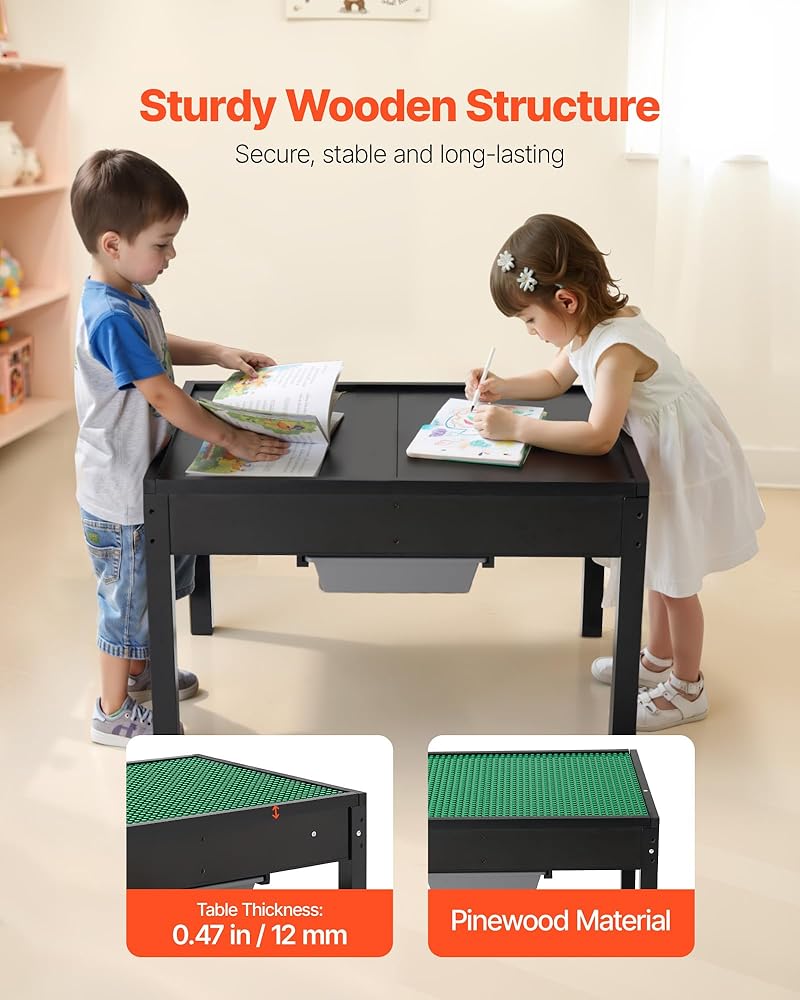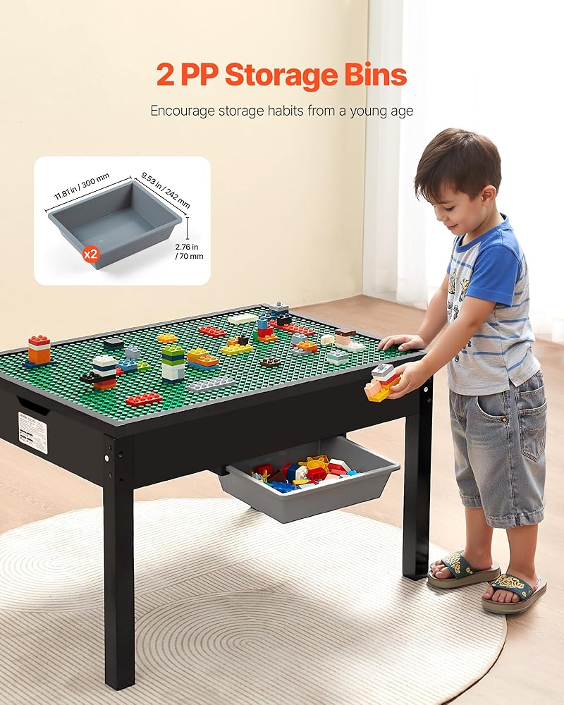 طاولة النشاط الخشبية لـ Vevor Kids ، لبنات البناء على الوجهين ، طاولة تشغيل متعددة الأغراض مع صناديق تخزين 2+ سنوات ، مساحة تخزين كبيرة ، حاضرة للبنين والبنات ، الأسود
