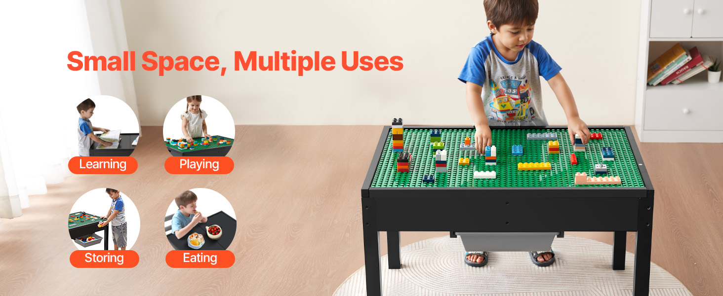 【سطح المكتب متعدد الوظائف】 يتميز طاولة التشغيل هذه بتصميم عكسي ، مثالي للعب والحرف اليدوية والوجبات! مع سطح لبنة ، فإنه يوفر الترفيه الذي لا نهاية له. بالإضافة إلى ذلك ، فإن التخزين المدمج يبقي منطقة اللعب مرتبة ومنظمة