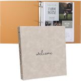 ورق "ن ترحيب مثل الإيجارات على المدى القصير - مجلد رمادي من الجلد 3 حلقة لـ Airbnb ، منزل الإجازة ، دليل المنزل ومعلومات الضيف - حجم الرسالة
