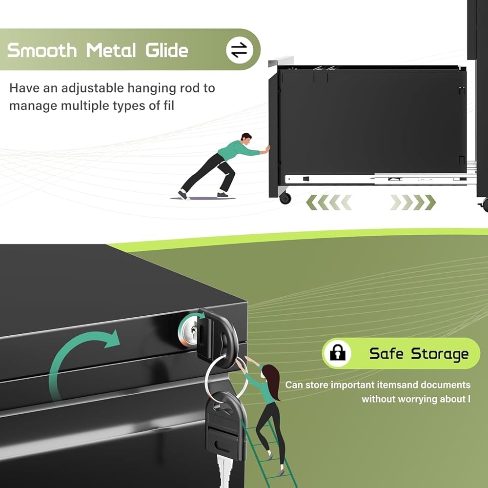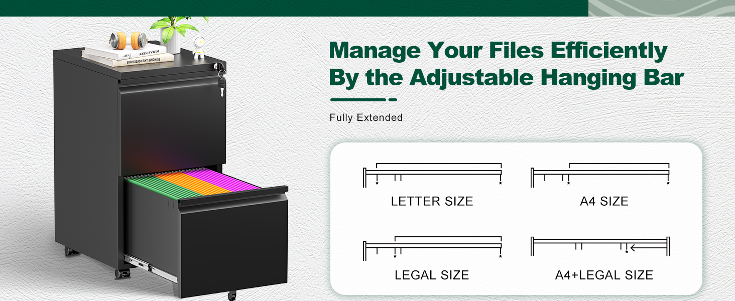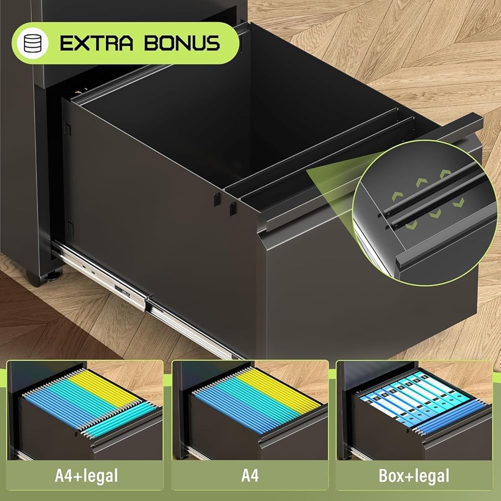 【تصميم Castor】 تم تجهيز خزانة الإيداع بما مجموعه 5 عجلات وعجلات قابلة للقفل و 2 360 درجة من العجلات الدوارة وعجلة مضادة للإمالة لمنع خزانة الملف من التحول. يسمح خيار 360 درجة للخزانة بالتحرك بسهولة ، ويمكن ضبط الاتجاه عند الإرادة ، وتوفر عجلات القفل الفرامل والاحتفاظ بها.