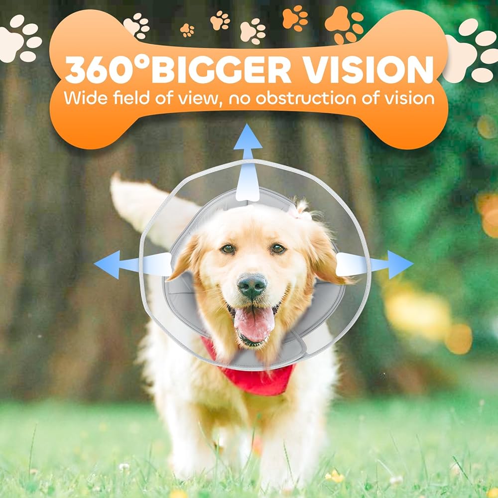 • 360 ° رؤية كبيرة للغاية: تم تصميم الطبقة العليا من المخروط للكلاب للتوقف عن لعق بمواد PVC شفافة ، رؤية أكبر بزاوية 360 درجة ، مشهد غير عائق ، ومنع الحيوانات الأليفة من الاصطدام ، وحماية الحيوانات الأليفة من التصادم وفي الوقت نفسه ، يمكنهم تناول الطعام والشراب واللعب بسهولة.