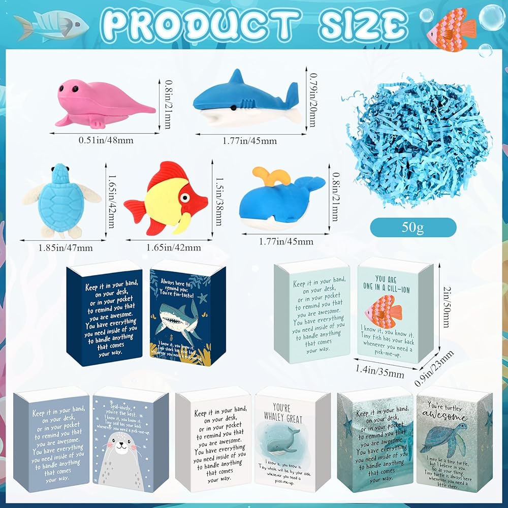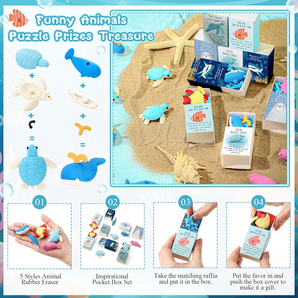 • Durable Materials: these welcome gifts for students are made of quality materials for long term usage; The rubber animals resist fading, which can easily erase pencil marks; The sturdy paper raffia and box are lightweight but thick enough for gifting