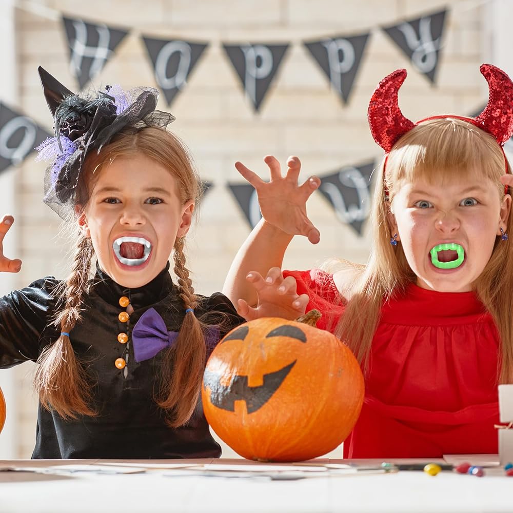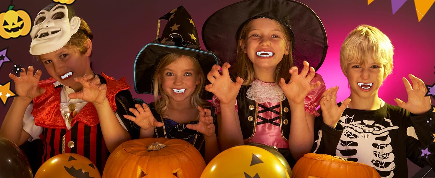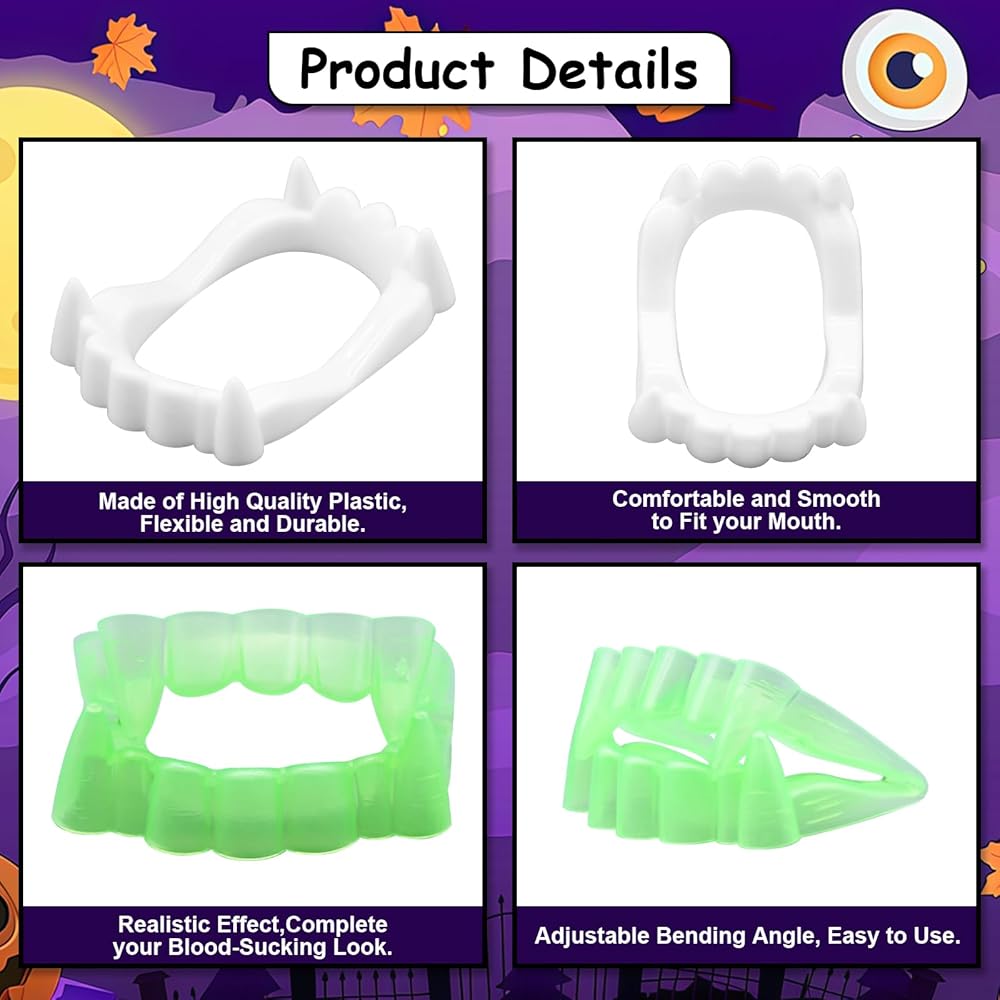 مثالي لللباس الجماعي-سواء كنت تستضيف منزلًا مسكونًا أو تنظيم زي جماعي ، فإن هذه الأنياب هي وسيلة سهلة لجعل الجميع في الروح المخيفة.