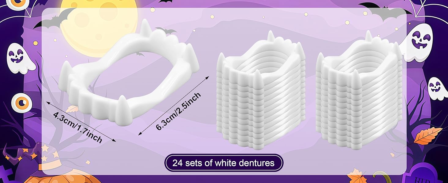 مجموعة أسنان مصاصي الدماء البيضاء السائبة - تأتي مع 24 أنياب مصاص دماء بيضاء ، مثالية للحفلات الكبيرة أو الفصول الدراسية أو أحداث الهالوين المجتمعية. ما يكفي من المرح العصبي للجميع.