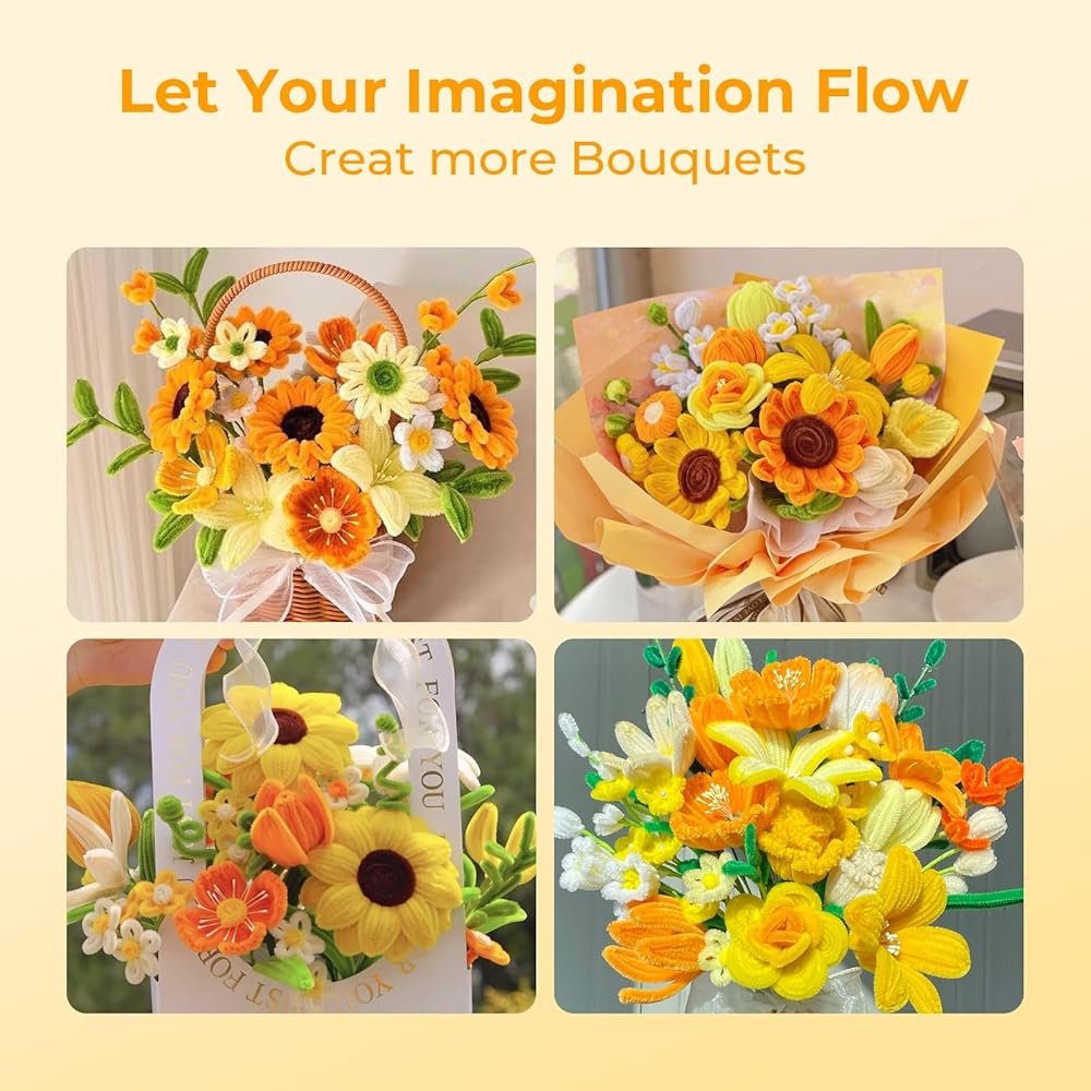 Beginner Friendly: We've prepared video tutorials for crafting different flowers, covering techniques for tulips, lilies, sunflowers, daisies, and more. The videos are easy to understand and follow, allowing you to create your desired bouquets with simple steps—perfect for beginners. All tutorials are available in the Videos section at the bottom of the product details page