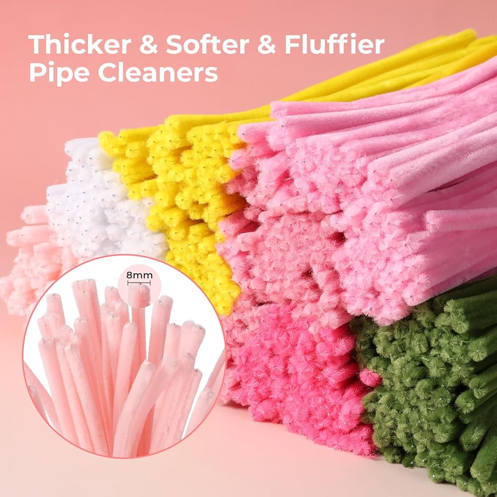 Premium Pipe Cleaners: Each fuzzy sticks measures approximately 12 inches in length and 0.31 inches in diameter. Featuring a dense plush fiber surface,these chenille stems pipe cleaners offer a soft and comfortable tactile experience. The flexible metal wire core is safe and elastic, allowing effortless bending, twisting, knotting, and cutting. Easily shape them into any design imaginable.