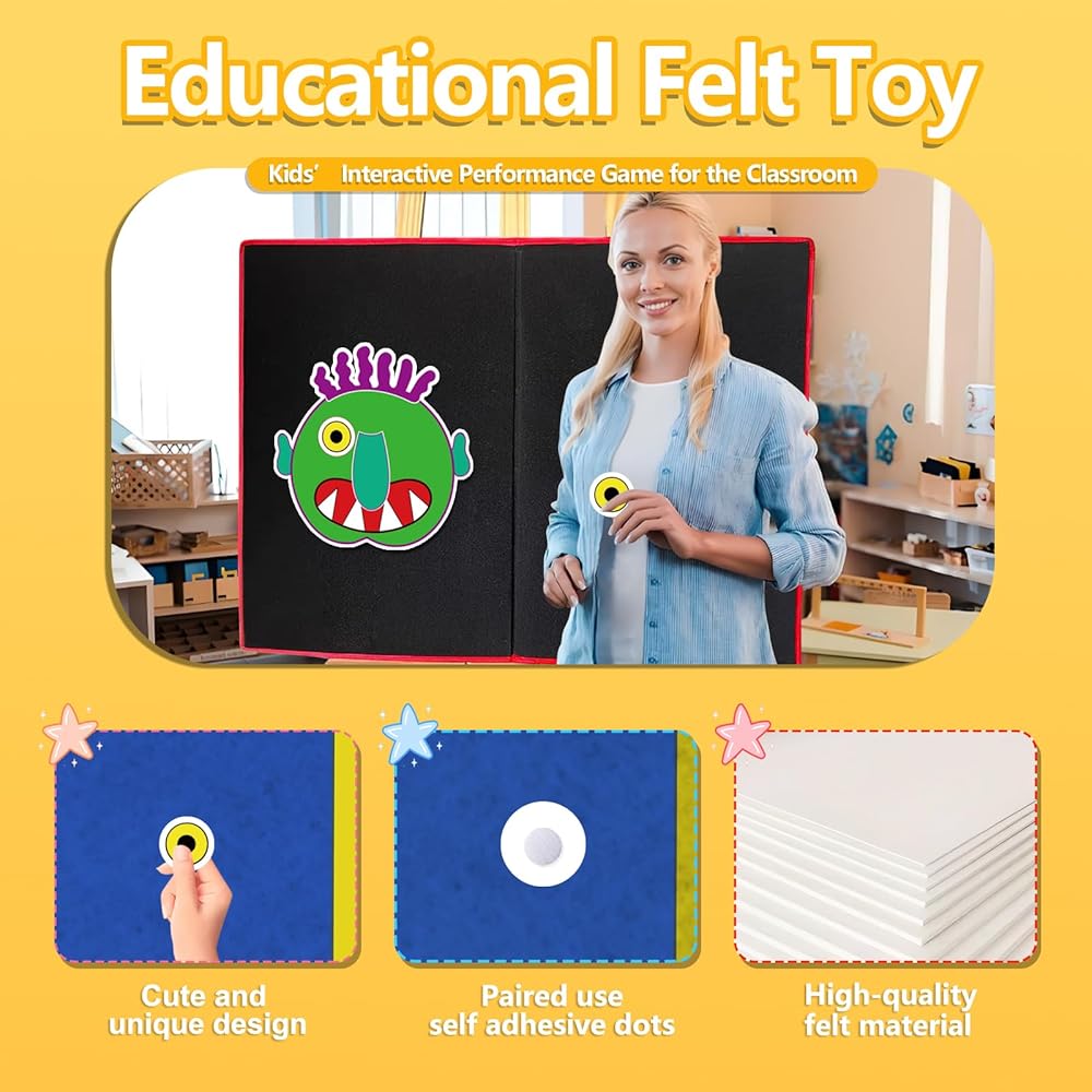 Make storytime come alive with the go away, big green monster felt board story set — a hands-on, interactive learning tool designed for toddlers and young children. Inspired by the popular children's book, this felt board set helps kids build confidence as they take control of the story, piece by piece, telling the monster to go away! Perfect for classroom activities, family bonding, or homeschooling, this set turns reading into an engaging and playful experience. The set includes colorful felt pieces representing each part of the monster's face — eyes, nose, mouth, ears, and more — all with hook-and-loop backing that sticks easily to any felt board. As children build and remove the monster, they develop storytelling skills, emotional awareness, and fine motor coordination. It's an excellent tool for helping children understand that fears can be faced — and even laughed at — with a little imagination. Whether you're a teacher looking for classroom must-haves or a parent wanting fun, educational toys at home, this Big Green Monster Felt Set is a creative way to support early childhood development through play and storytelling.
