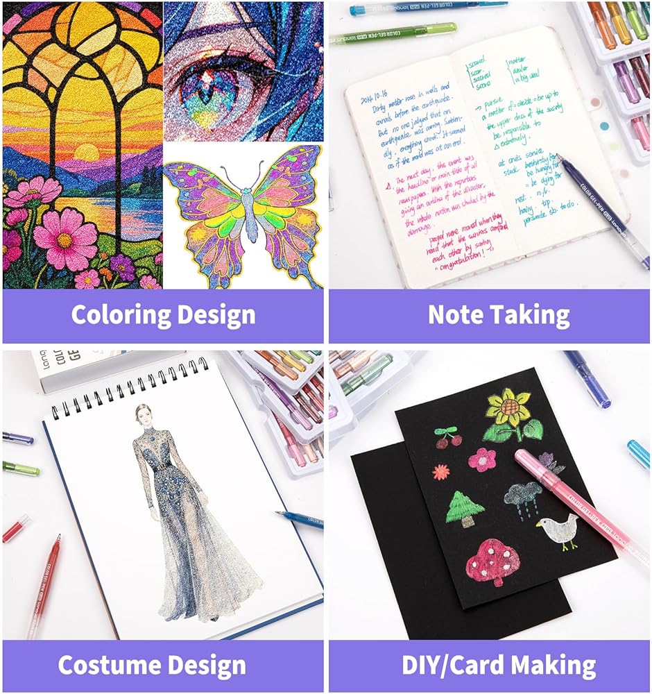 【 Multi-Purpose Usage】The gel pen set is an ideal art supply for adults and kids, perfect for coloring books, bullet journaling, sketching, drawing, writing, comics, and any other designs on Scrapbooks, School Projects, Party Invites, Greeting Cards, DIY Decor, Letters to Friends or Family.