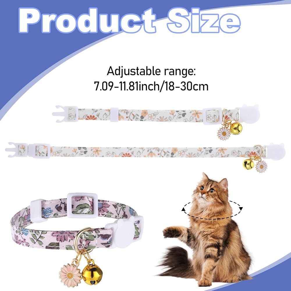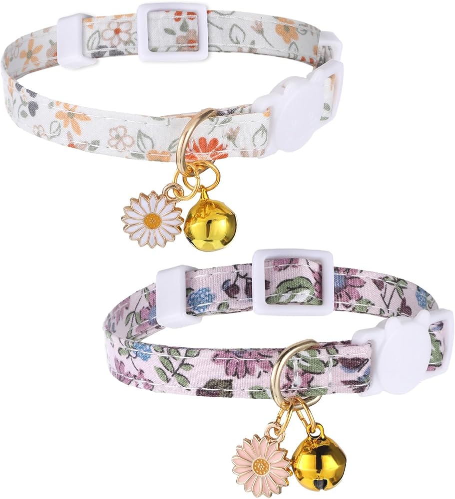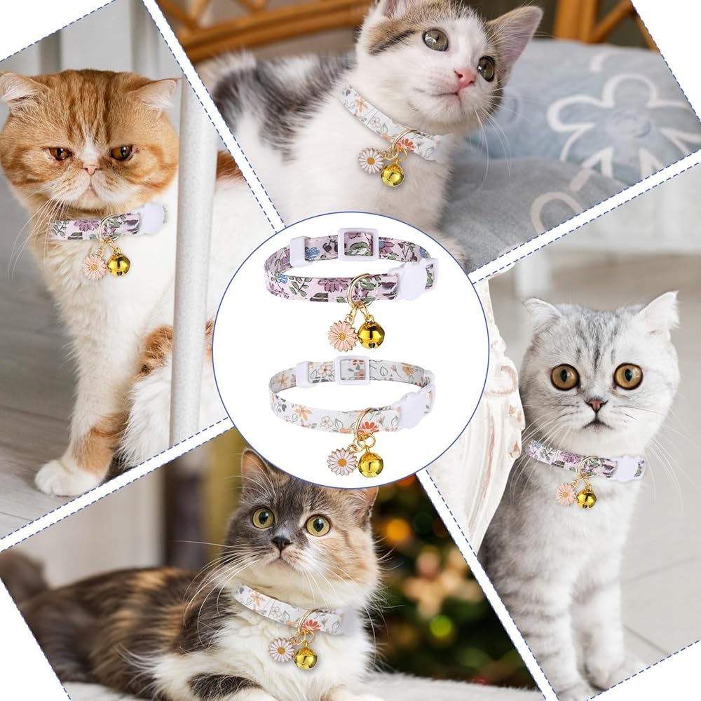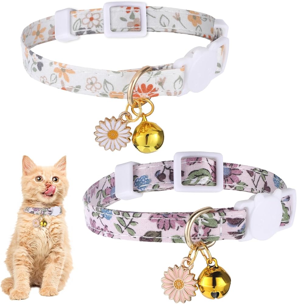 Hpmjz 2 Pack Cotton Breakaway Cat Collar Flower Pendant Kitten Collars Cute Pet Collar with Bell Floral Patterned Collars Adjustable 7-11 Inch Suitable for Female Girl Cats Male Boy Cats