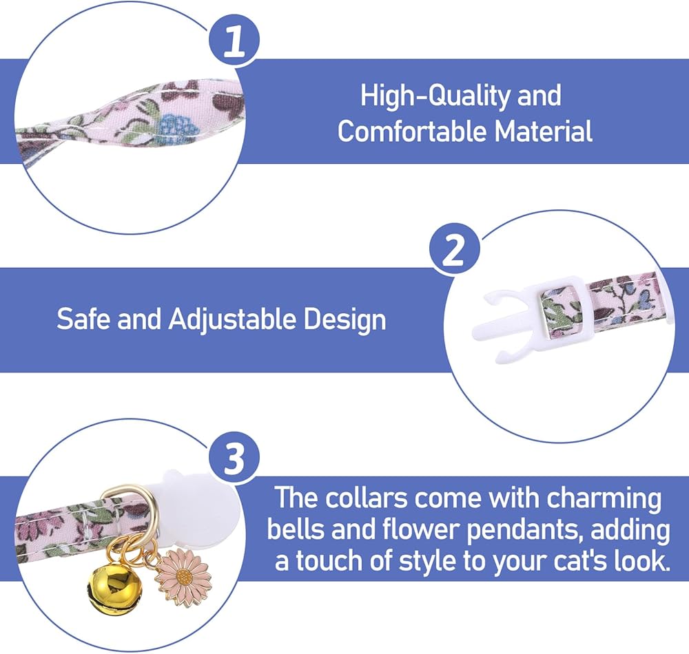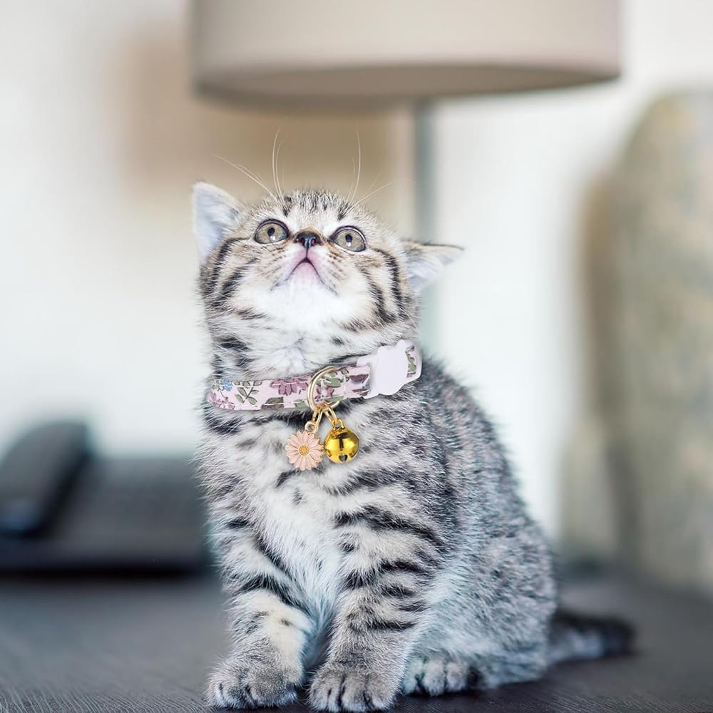 【High-quality Material】Our cat collar is made of high-quality polyester. Kitten collar with bell is soft and breathable, and cat accessories are gentle on your pet's skin, ensuring comfort and safety when wearing breakaway cat collars.