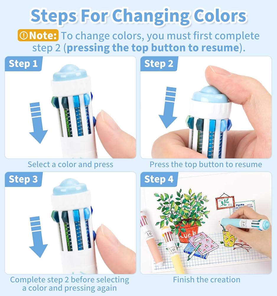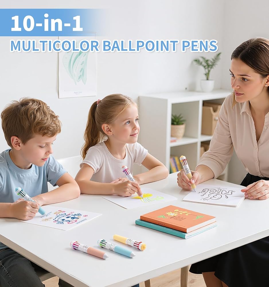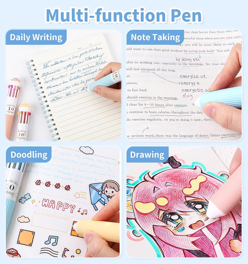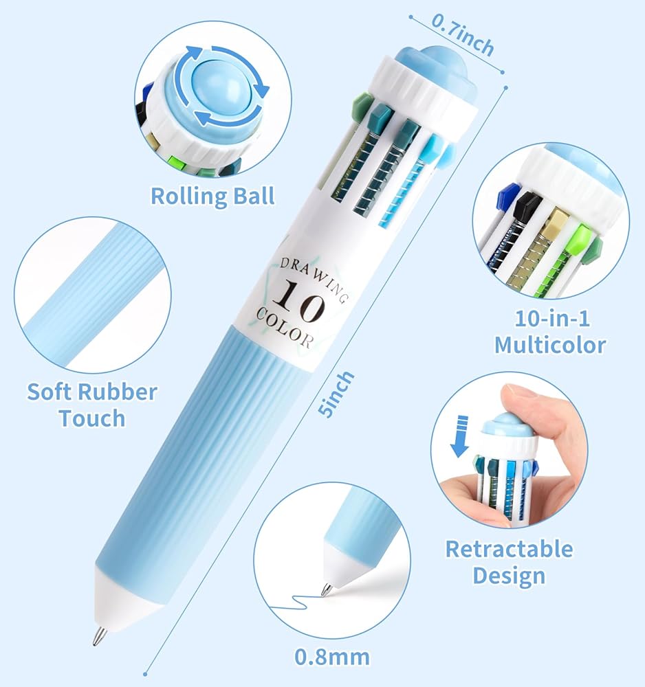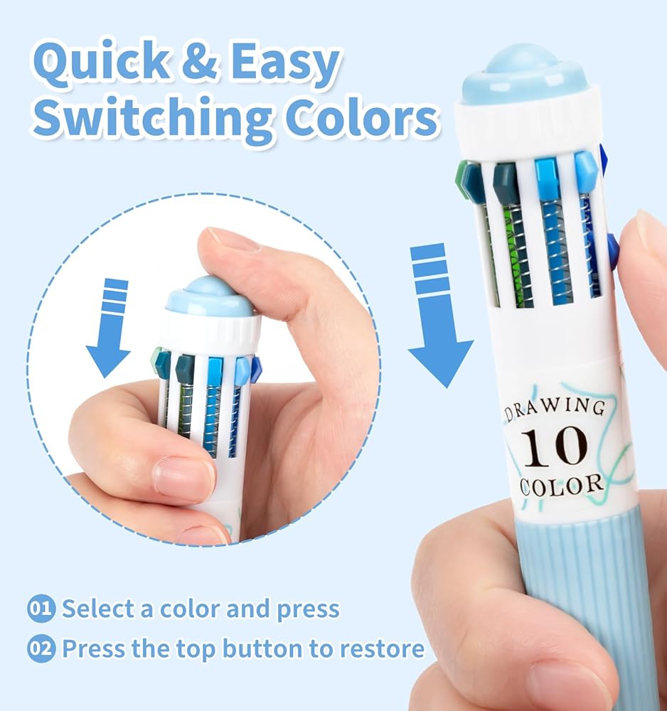 【تصميم سهل الاستخدام-يحتوي القلم متعدد الألوان 10 في 1 على 10 ألوان حبر في كل قلم. من الجيد أن تكون جميع ألوان الحبر في قلم واحد للراحة. ② تصميم قابل للسحب مريح. ③ أقلام أحمال حبر 10-in-1 في واحدة لديها قبضة ناعمة مريحة للكتابة بها وسهلة الاحتفاظ بها.