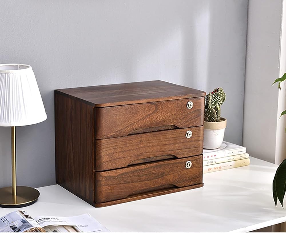 Flat File Cabinet - Solid Wood Storage Box, Wooden Desktop Storage Box with Lockable Drawers, Office Supplies A4/Receipt File Organizer, Locking Filing Cabinet 2/3/4 Drawers(3 Layer) in Kuwait