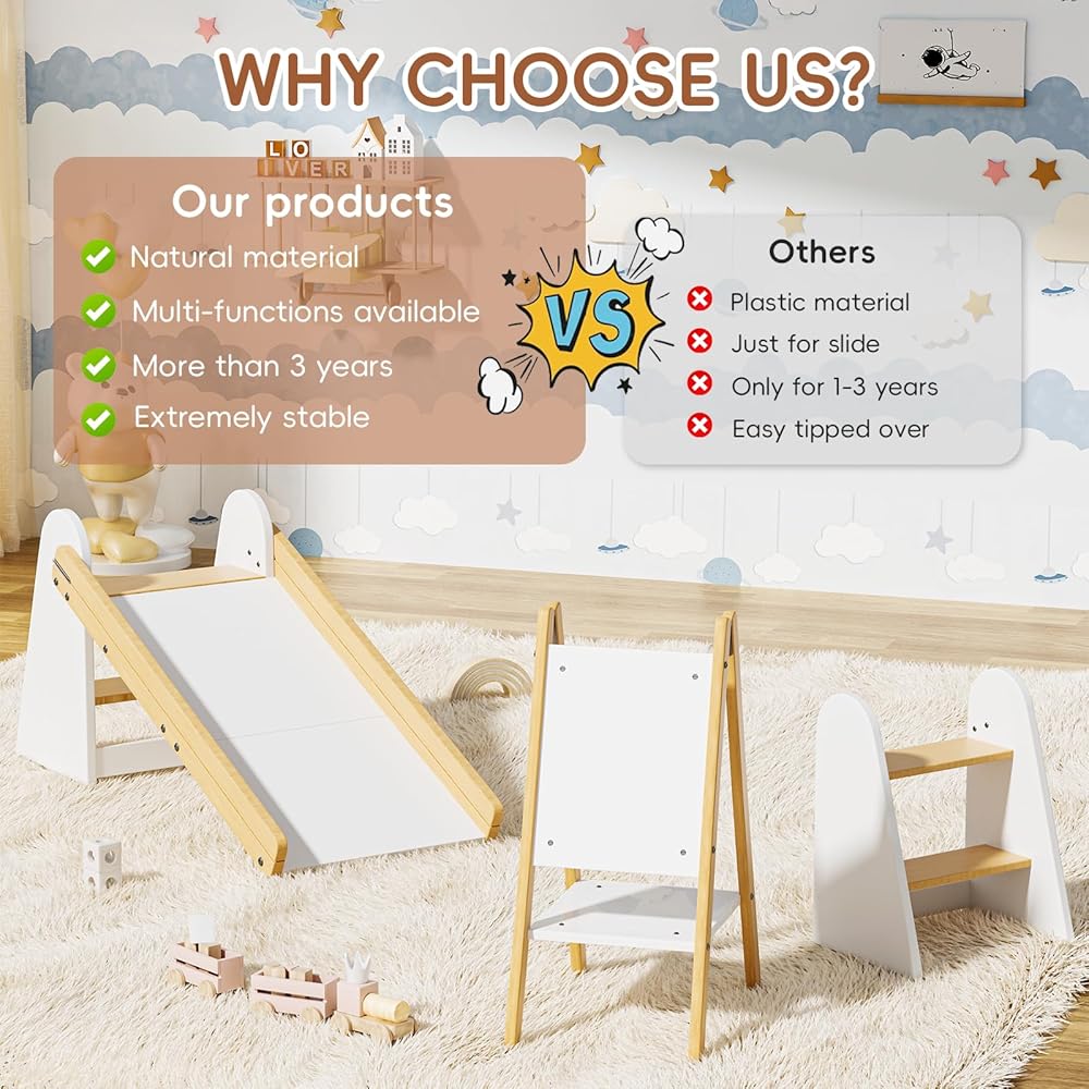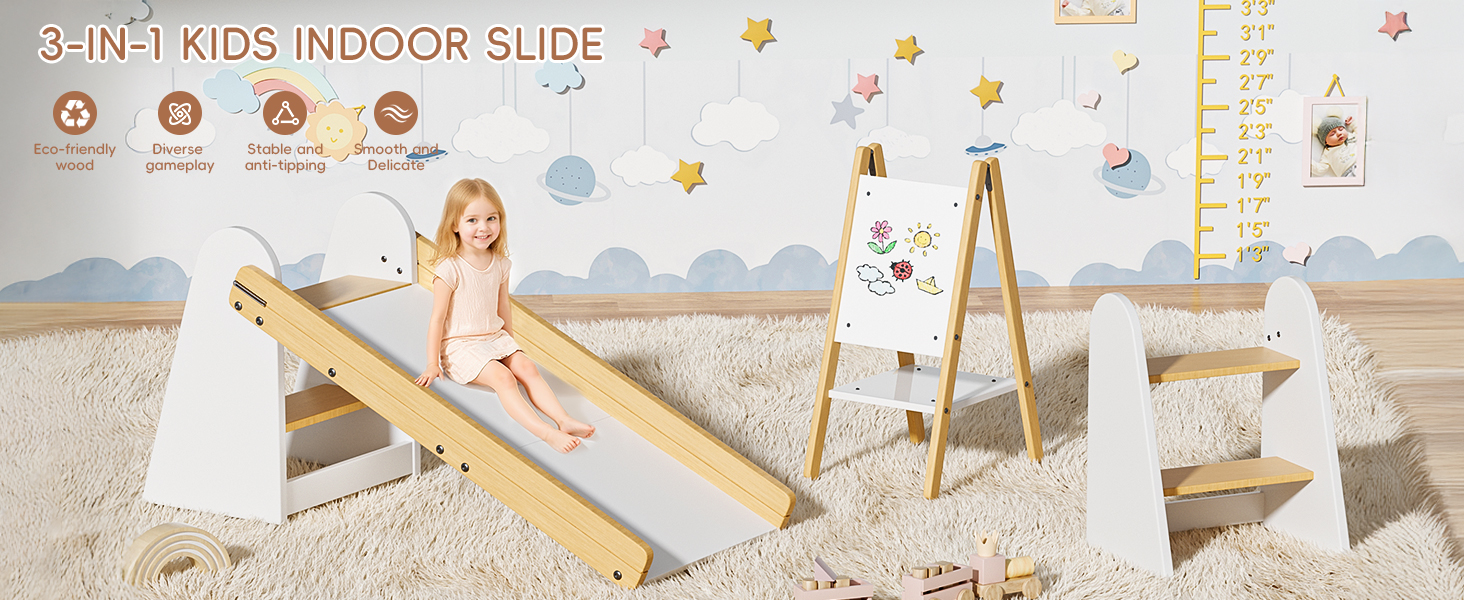 • شريحة مستقرة ودائمة: إن الشريحة الداخلية للأطفال مصنوعة من الخشب الصلب ، وهو غير سامة ولا رائحة. اعتماد الهيكل الثلاثي الأكثر استقرارًا ، فإن شريحة الأطفال الداخلية مستقرة بما يكفي وليست سهلة للغاية. المادة المقاومة للماء تجعل التنظيف سهلاً