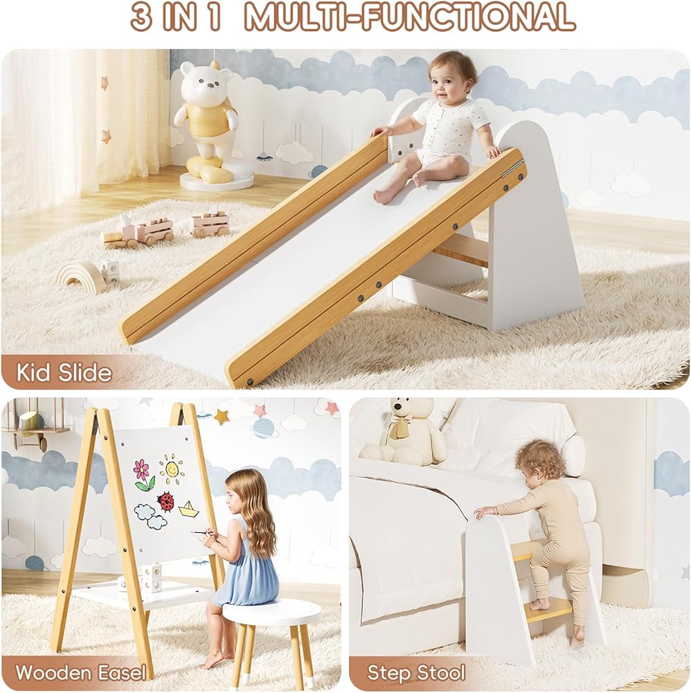 3 في 1 شريحة صغيرة شريحة داخلية ، يمكن استخدام شريحة أطفال خشبية للأطفال الصغار 1-3 ، كبراز الحامل والخطوة ، وملعب Slides FlaySet Toddler للداخلية والخارجية في الهواء الطلق