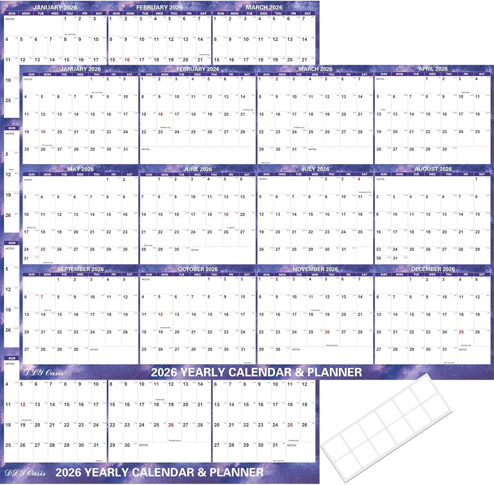كتل التقويم الكبيرة: 24 × 36 تقويم الجدار 2026 يتميز كتل كبيرة جدًا لسهولة الجدولة. قياس الكتل الرأسية 1.46 "× 2" ، والكتل الأفقية قياس 1.65 "× 1.77". الطباعة الجريئة على خلفية بيضاء مشرقة تبقي ملاحظاتك واضحة وسهلة القراءة. يتم تضمين تواريخ Jualian للمساعدة في التخطيط على المدى الطويل ، ويتم تمييز العطلات الرئيسية باللون الأحمر ، لذا لن تفوتك يومًا مهمًا.
