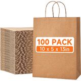 Metaprint 100pcs أكياس الورق البني الكبيرة مع مقابض في أكياس هدايا 10 × 5 × 13