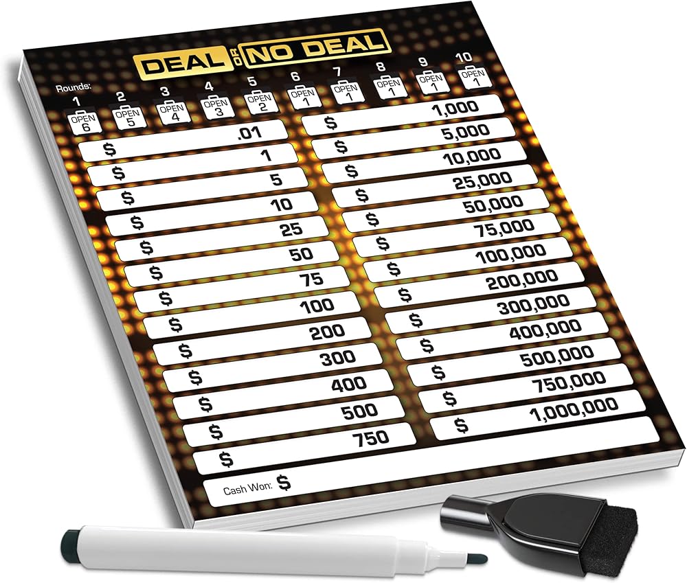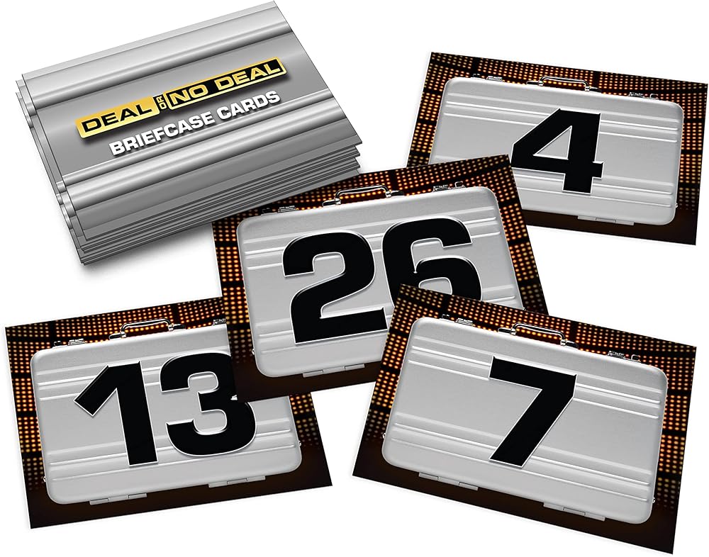 INCLUDES – 26 Briefcase Cards, 26 Cash Cards, 1 Bank Offer Guideline Card, 1 Wipeable Board, 1 Dry-Erase Pen, and Instructions. This deluxe game is made for 2+ players.