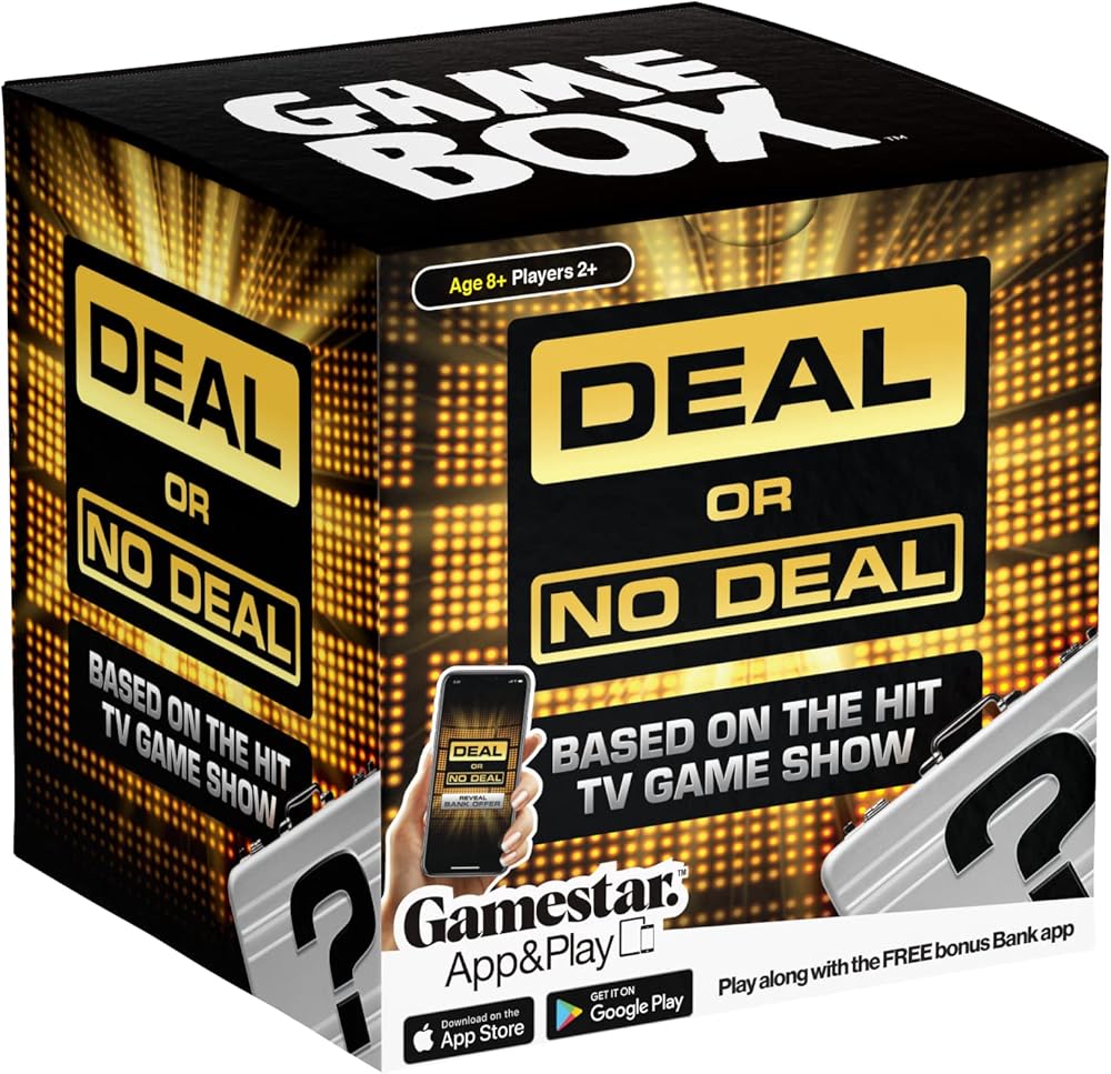 Bring the hit game show home or on the go and play with friends and family. Get ready for the anticipation and excitement as you take chances. Which case will you pick? What will you choose when the Banker asks, “Deal or No Deal?” This deluxe game box includes 26 Briefcase Cards, 26 Cash Cards, 1 Bank Offer Guideline Card, 1 Wipeable Board, 1 Dry-Erase Pen, and Instructions. Made for 2+ players. For extra fun, download the free Gamestar+ App with sound effects straight from the show and extra features!