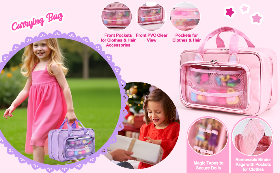【الجودة · ألوان متعددة】 تم تصميم حقيبة الحمل بمواد متميزة وخياطة قوية للرفقة الدائمة. متوفر بألوان متعددة للحفاظ على Dolls World منظم