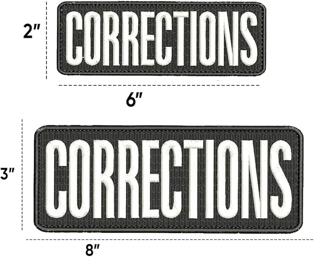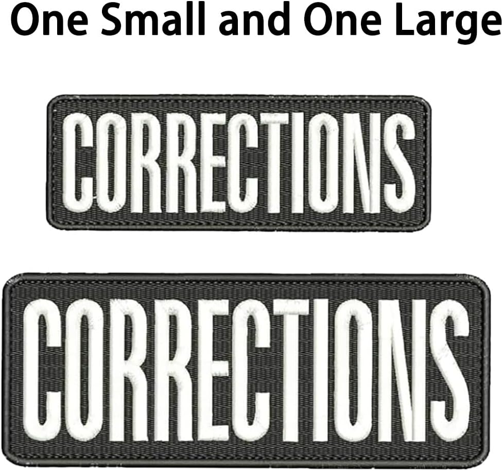 Corrections Patch features superior twill material for long-lasting use. Package includes a large patch and a small patch.Small 2"x6" and large 3"x8" suitable for adults. White threaded embroidery ensures patches are visible from a distance. Corrections security patch are perfect for tactical vests, jackets,caps,Backpacks etc.