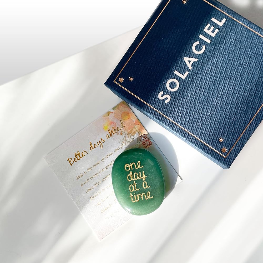 The Solaciel affirmation worry stone is handcrafted with ethically sourced natural gemstones. It integrates mindfulness meditation and crystal healing to bring you peace and calmness. Carry it with you and let this in-pocket therapy awaken your inner strength, reminding you of all the love and important things in your life. It is an ideal gift to yourself, and a thoughful gift to the ones you care for.