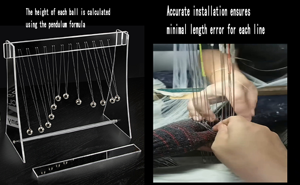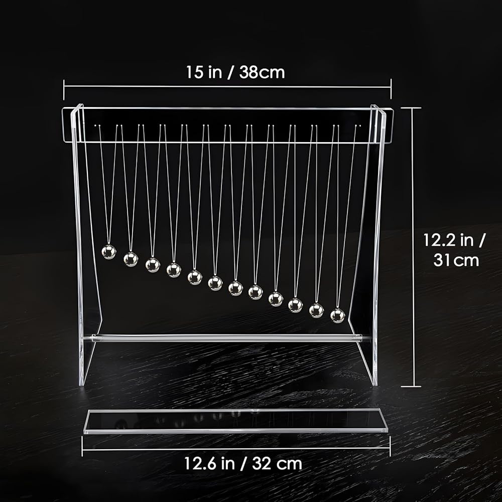 - تتألف موجة البندول البالغة 12 كرة من قوس أكريليك عالي الجودة و 12 كرات من الفولاذ المقاوم للصدأ