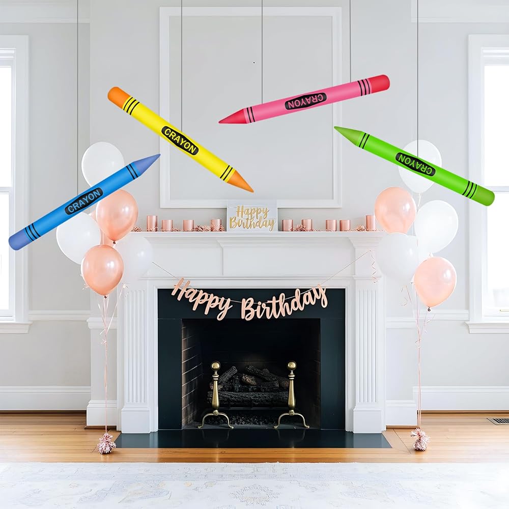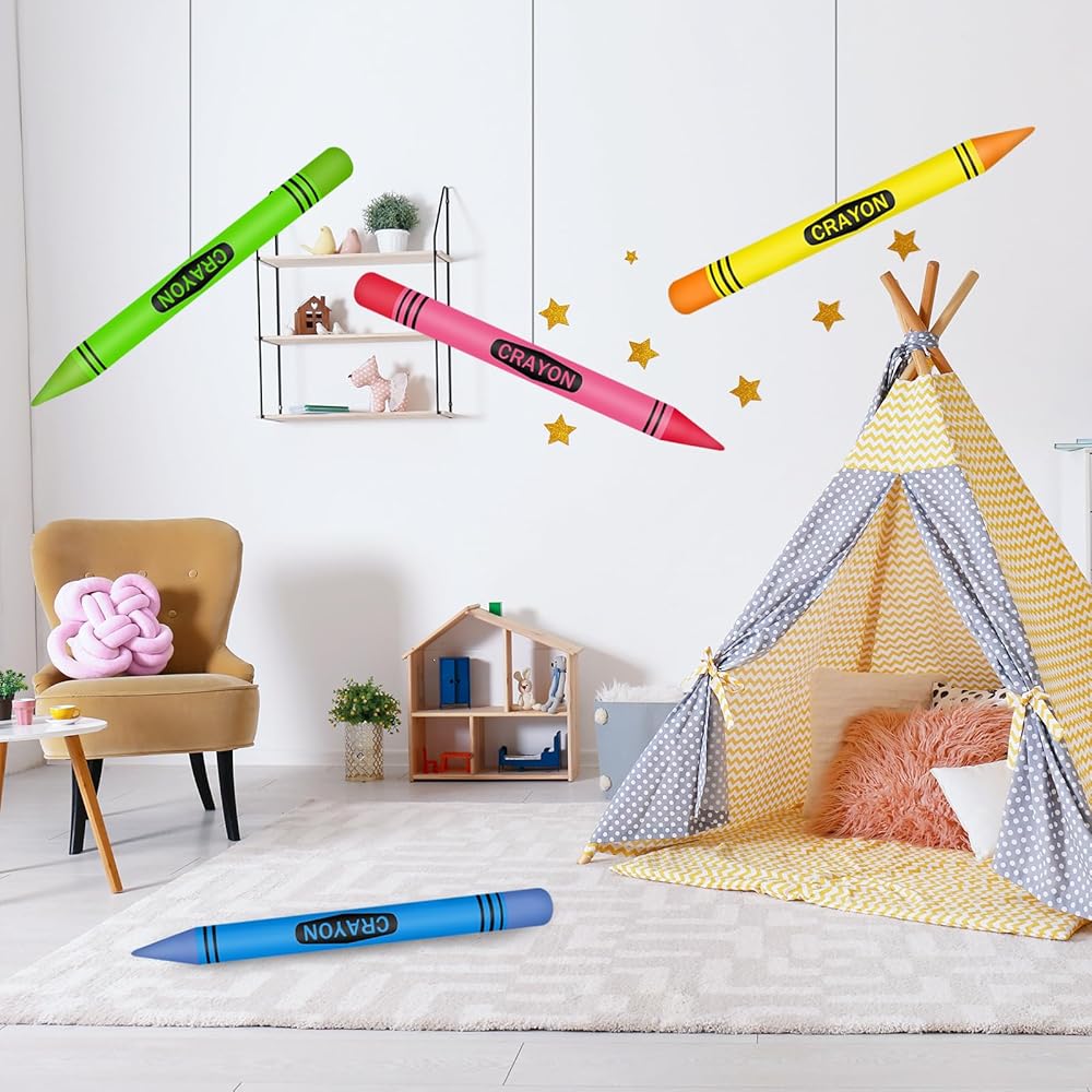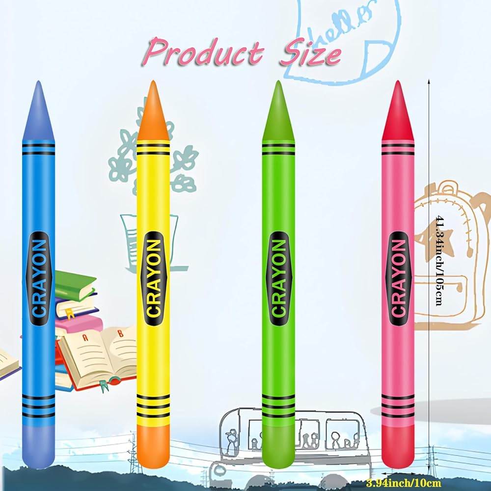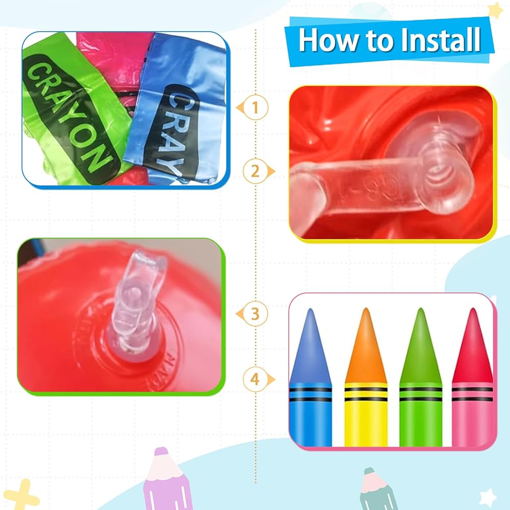【Rich and Novel Inflatable Crayons Set】: Large inflatable crayons set is carefully crafted with attention to detail quality to suit your decoration needs; these crayons balloons consist of 4 brightly colored crayons that bring a vibrant, exciting party atmosphere to any venue.