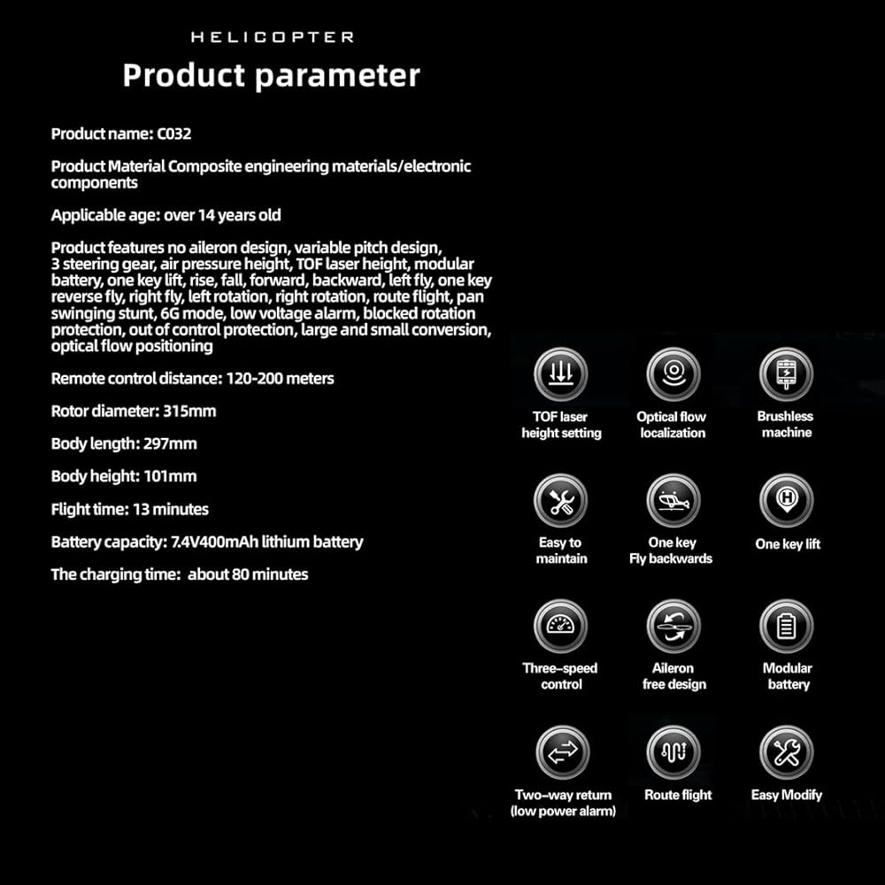 🚁【Advanced Flybarless Design with 6-Axis Gyro】Utilizes a flybarless rotor system and aerodynamically optimized propellers for enhanced power and superior self-stabilization. Combined with a 6-axis electronic gyro, it delivers ultra-stable, responsive flight performance ideal for Hobbyists.