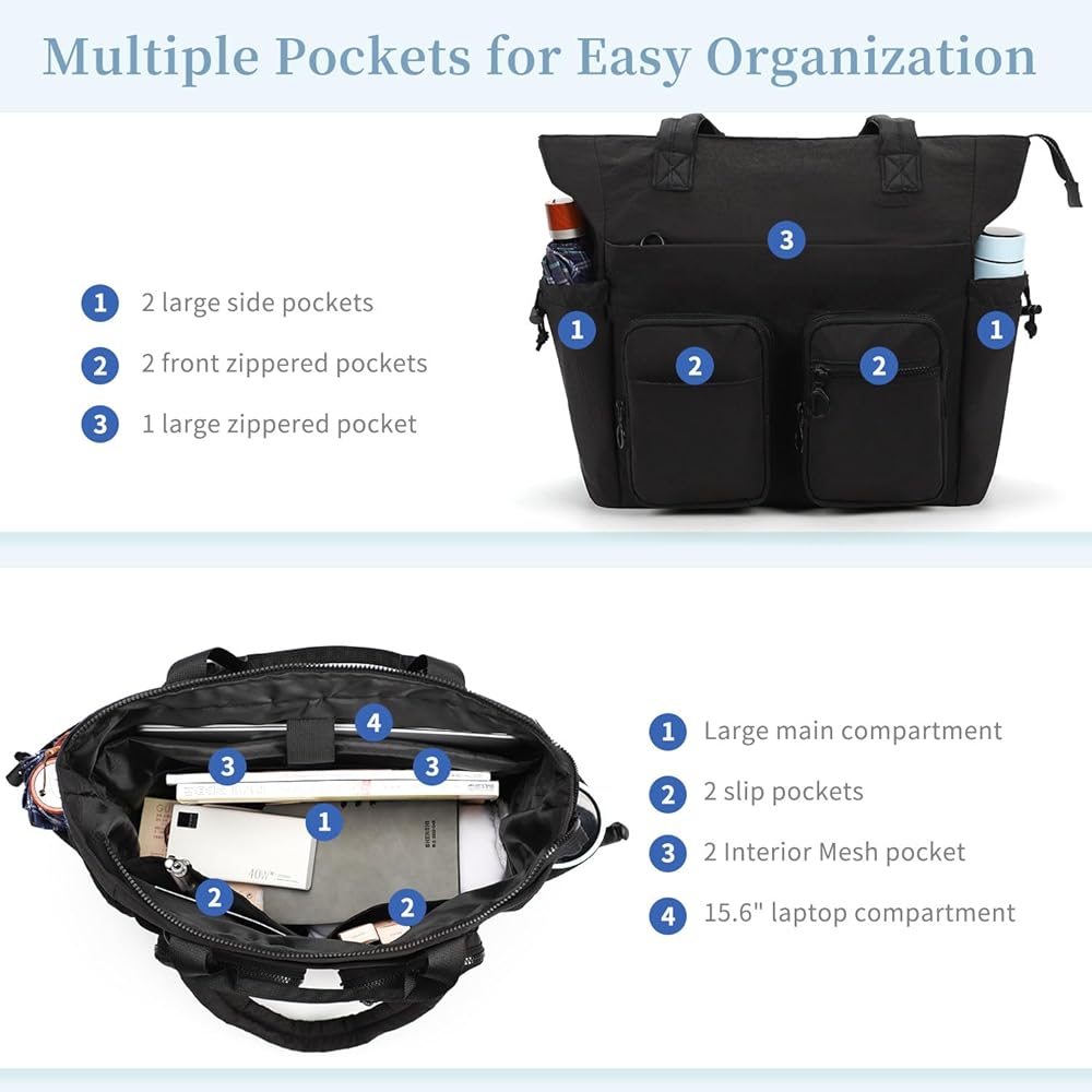 تخطيط ذكي متعدد المؤسسات: مصممة لتناسب كمبيوتر محمول 15.6 بوصة ، وملابس صالة رياضية ، وحفازات ، وأكثر من ذلك ، تتميز حقيبة حمل كبيرة للنساء بواجهة رئيسية واحدة ، و 3 جيوب داخلية ، وحامل زجاجة جانبيين للمسلسلات ، ومستحضرها ، مما يؤدي إلى الاستفادة من الجهود.