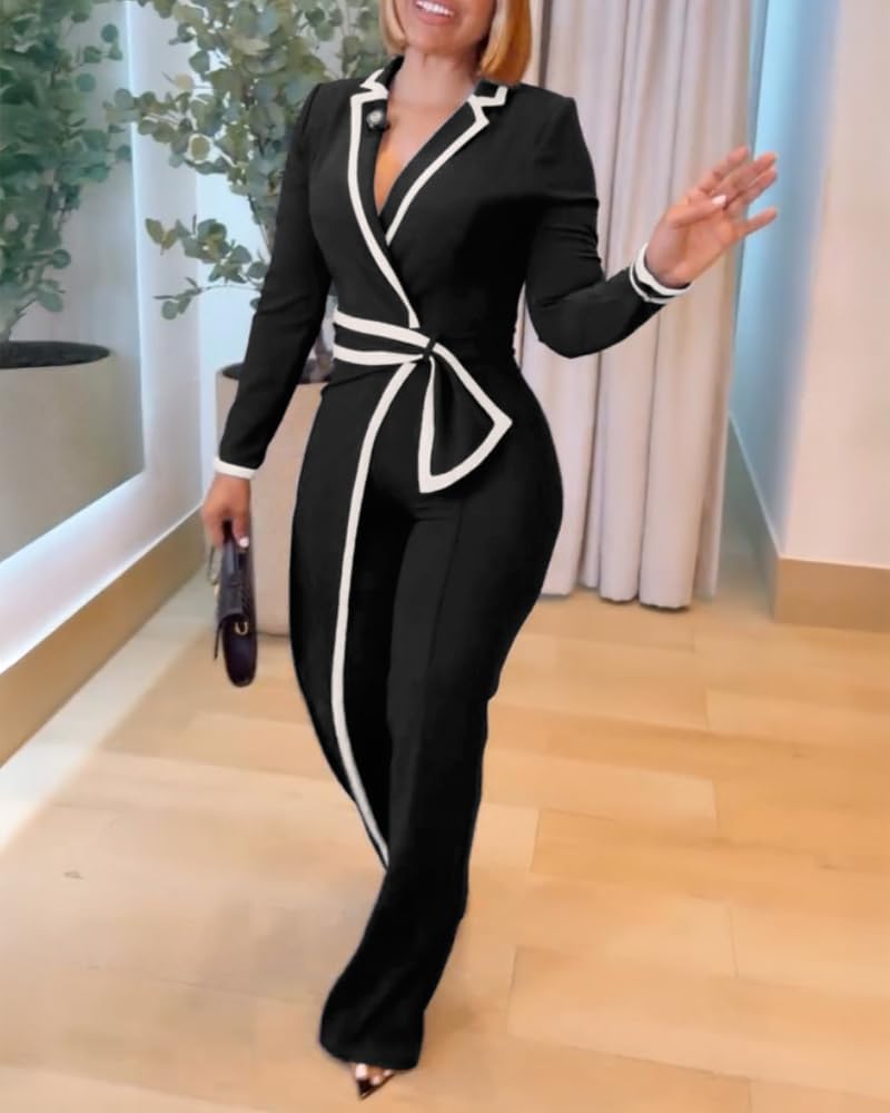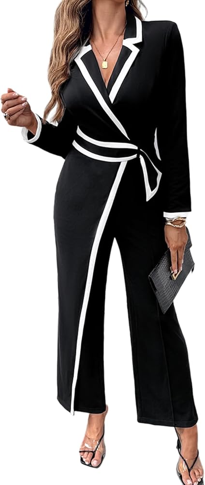 Notched collar&Contrast paneling: colorblock stripes introduce bold lines that elongate the body and add a modern, graphic edge makes it a chic and trendy jumpsuits for women