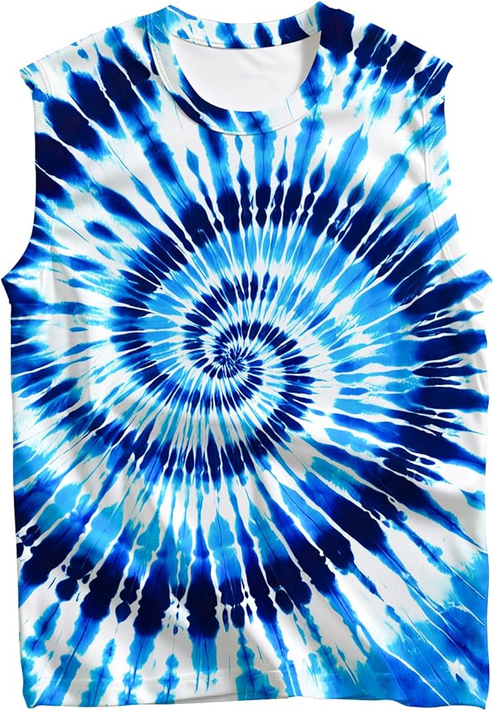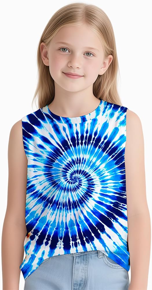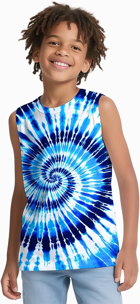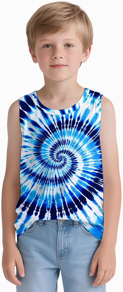 Poykopty Kids Tie Dye Tank Tops Childrens Sleeveless T-Shirts Hippies Tees for 5-14 Years Boys Girls