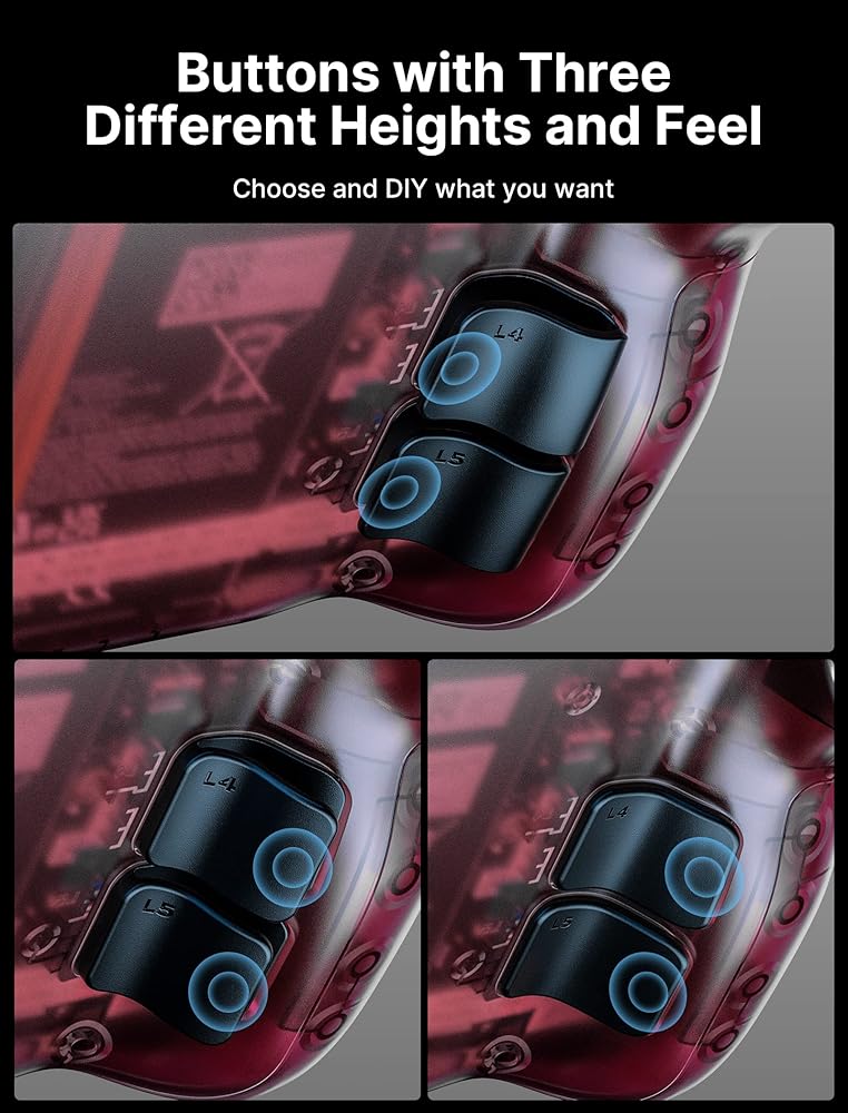 【استمتع بتصميم جديد للزر الخلفي】تتميز كل مجموعة بارتفاعات مختلفة (أصلية وعالية ومنخفضة)، مناسبة لجميع أنواع اللاعبين. يتميز كل زر بملمس ممتاز أكثر متانة ومضاد للانزلاق.