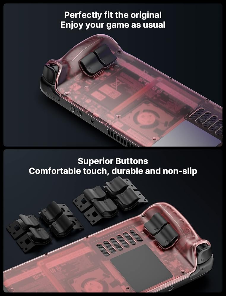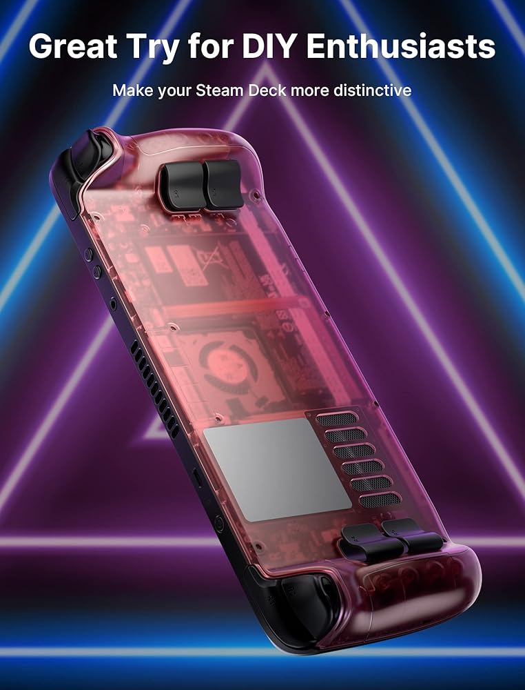 【يرجى تجنب أي مفاهيم خاطئة】 هذا المنتج عبارة عن غلاف بديل شفاف مصمم خصيصًا لسطح البخار. في الواقع، فهو يشتمل فقط على أغلفة بديلة شفافة وأزرار وملحقات ضرورية مثل مفك البراغي للتثبيت، وكلها مخصصة للاستخدام مع Steam Deck. ❗❗❗ لا تتضمن أي مكونات إلكترونية أو وحدة تحكم Steam Deck.