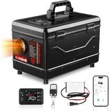 سخان الديزل 110V/12V/24V 8KW ، الكل في واحد 5L سخان لوقوف السيارات ديزل الهواء يأتي مع جهاز التحكم عن بُعد في التطبيق وشاشة LCD مناسبة لمخاطر متاجر RV ، قارب RV ، الأسود